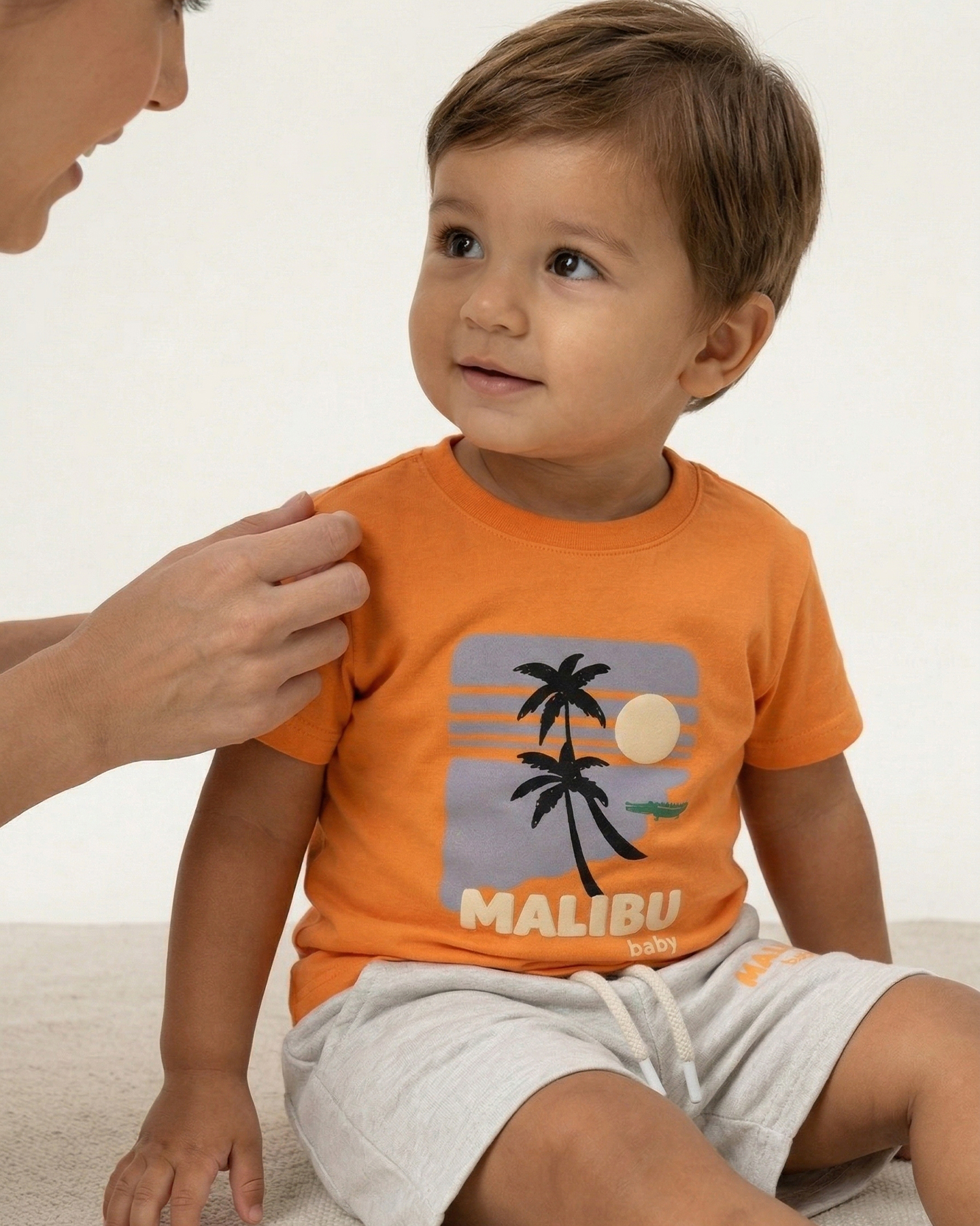 Erkek Bebek Baskılı Turuncu Renkli Şortlu İkili Takım için 1 değerlendirme