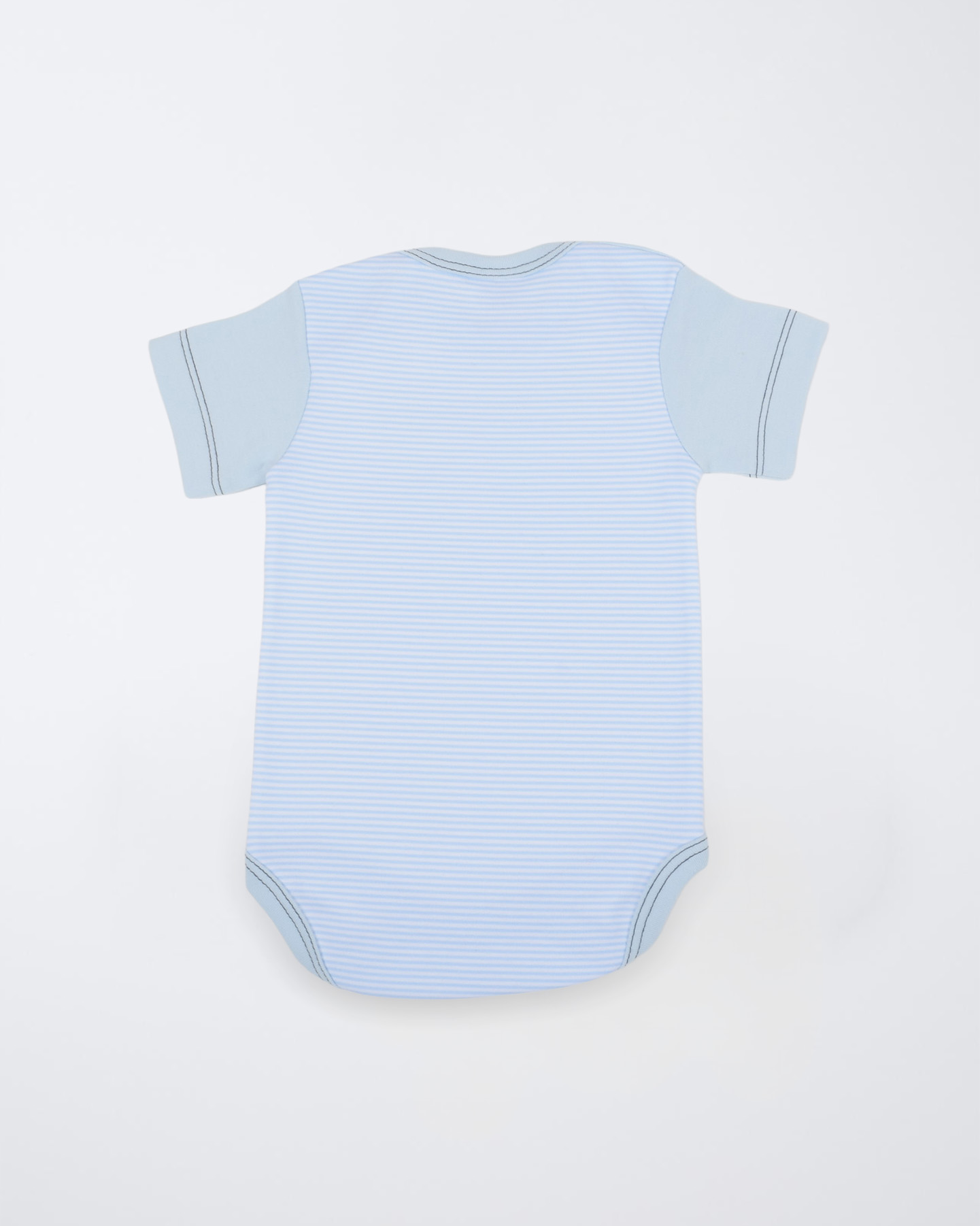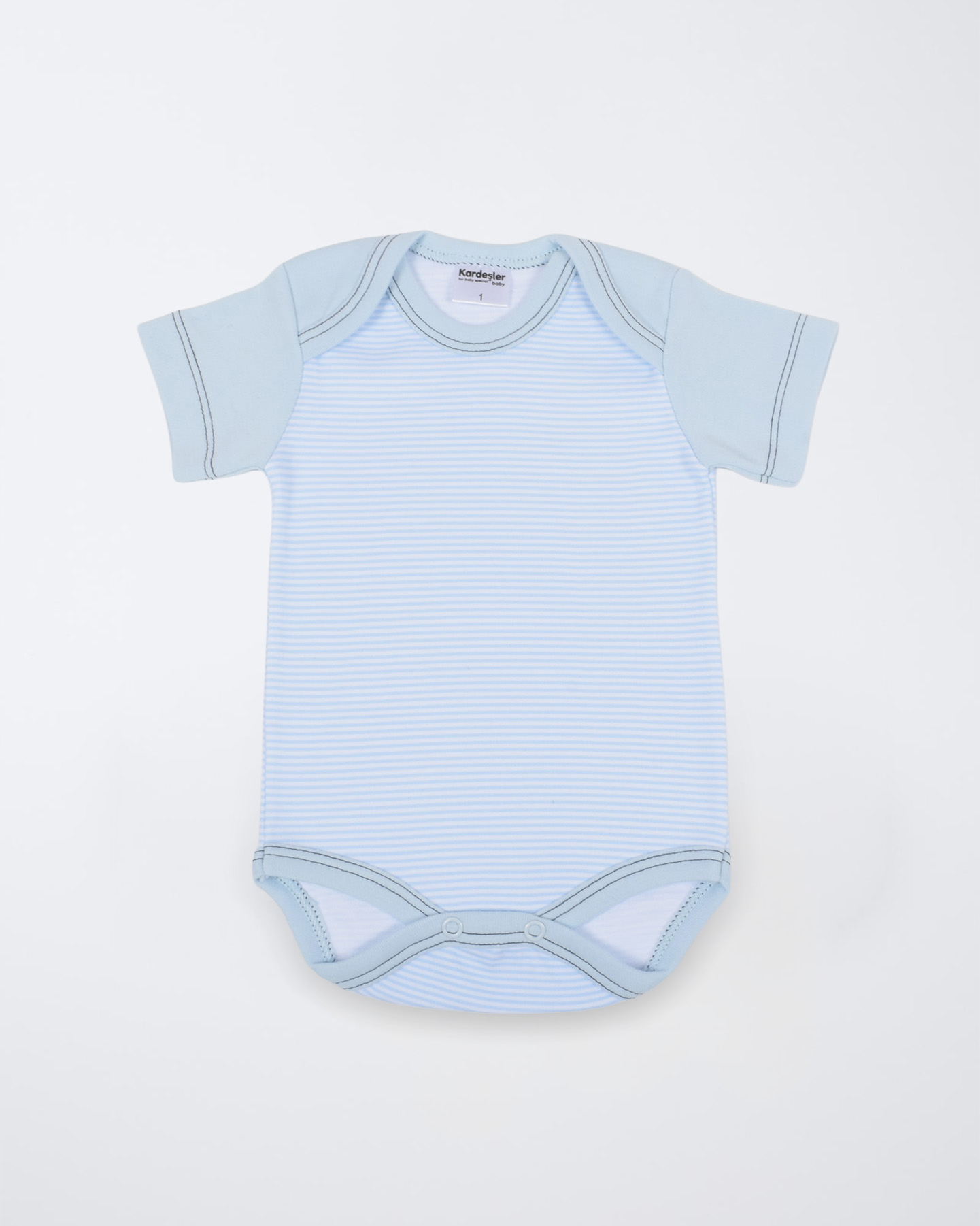 Erkek Bebek Yarım Kol Mavi Çizgili Çıtçıtlı Body