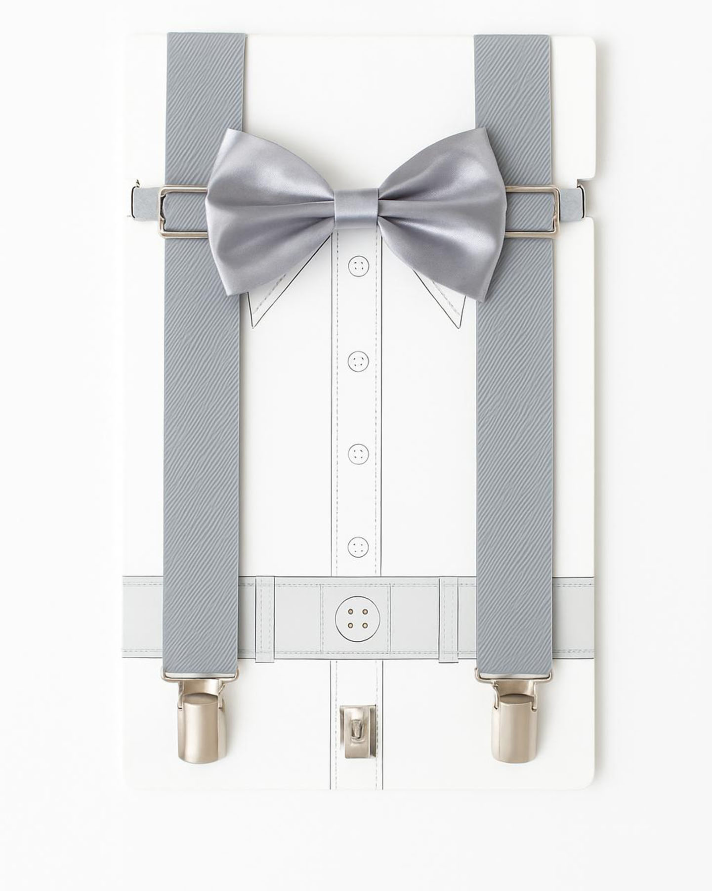 Erkek Çocuk 2-6 Yaş Ayarlanılabilir Metal Tokalı Pantolon Askısı ve Papyonlu Gri Takım