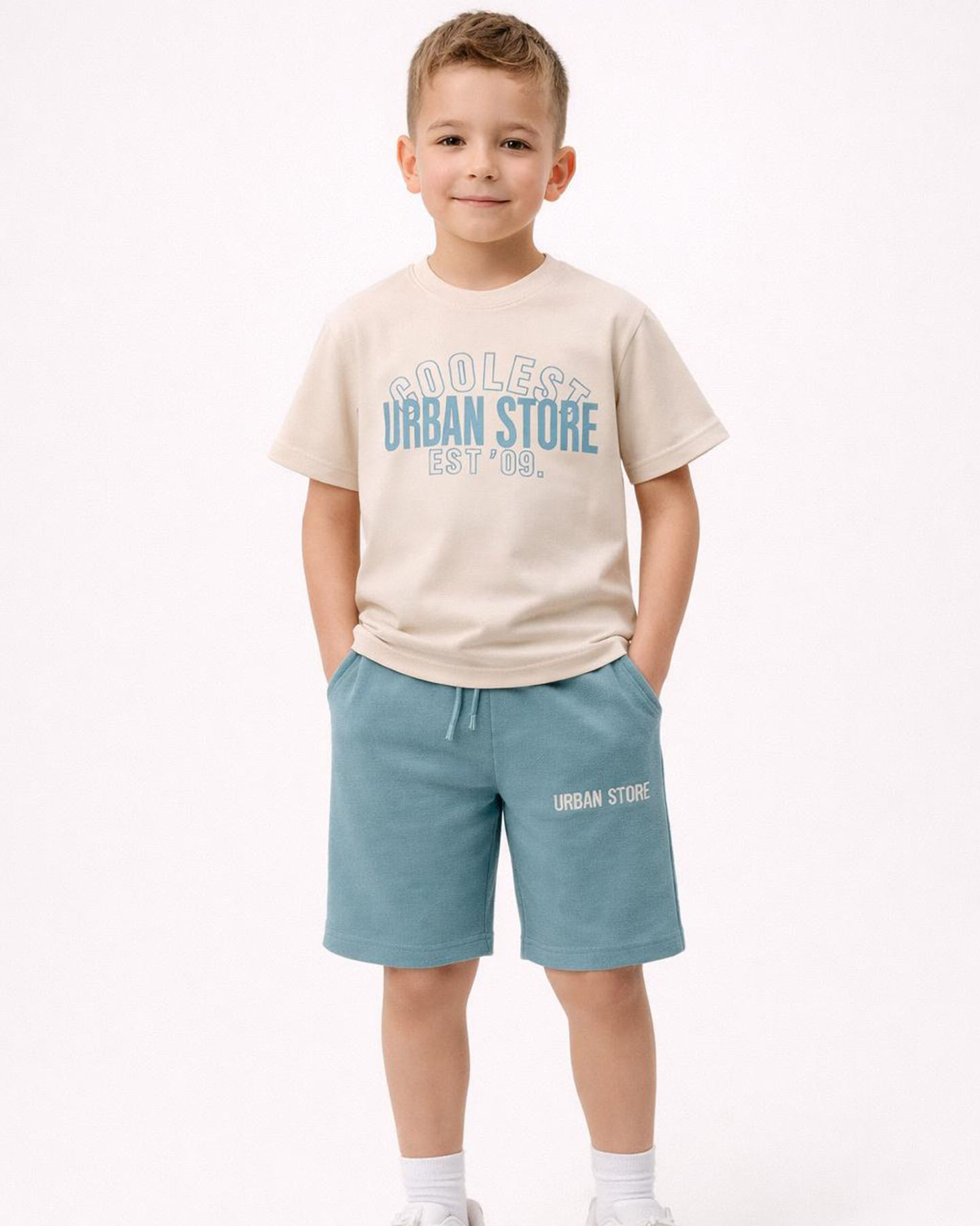 Bu ürünün birden fazla varyasyonu var. Seçenekler ürün sayfasından seçilebilirErkek Çocuk Turkuaz Tişörtü Desenli Alt Üst Şortlu Takım