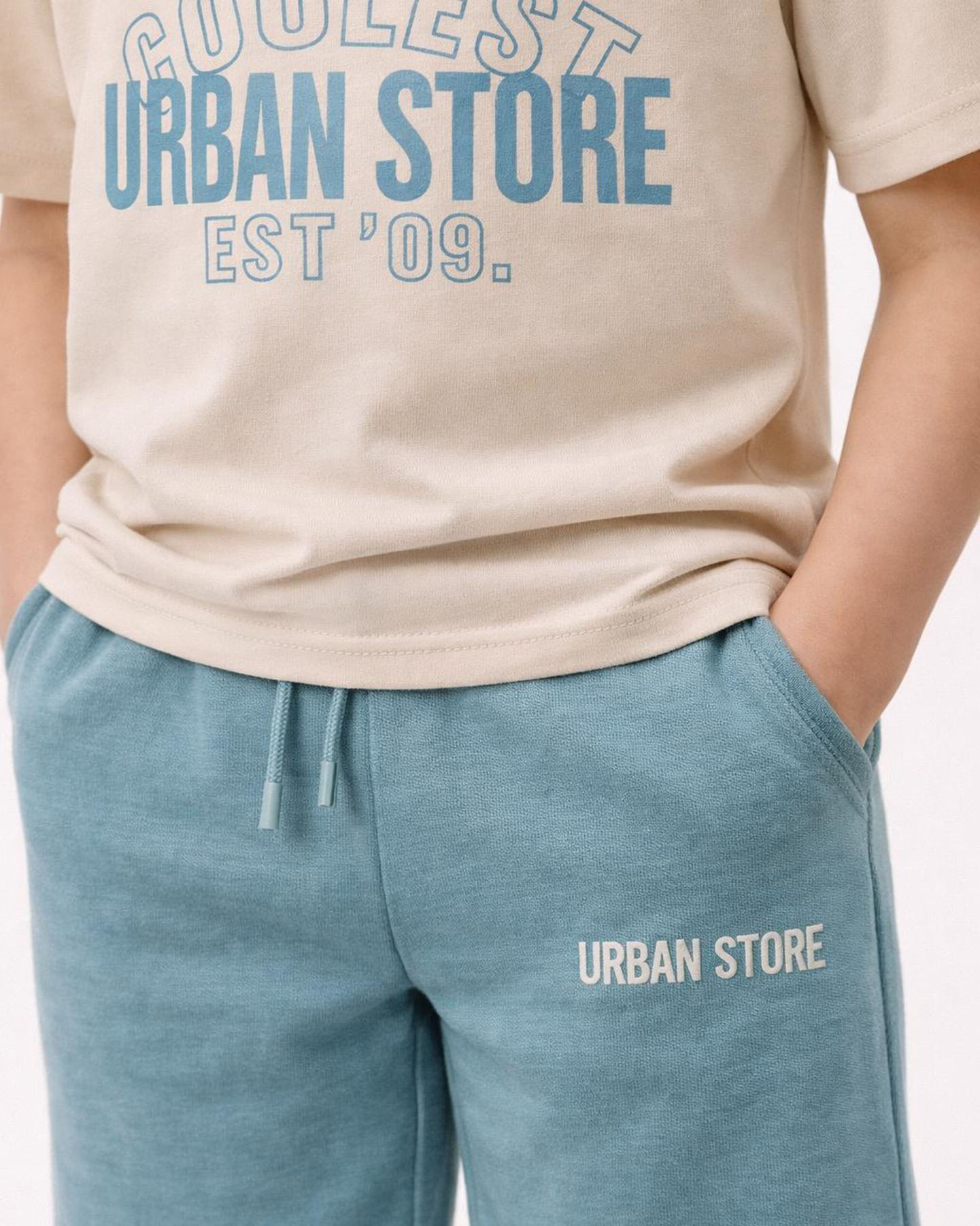 Baskılı tişörtü ve ayarlanabilir bağcıklı, esnek bel yapısına sahip şortu ile hem rahat hem de hareket özgürlüğü sağlar.