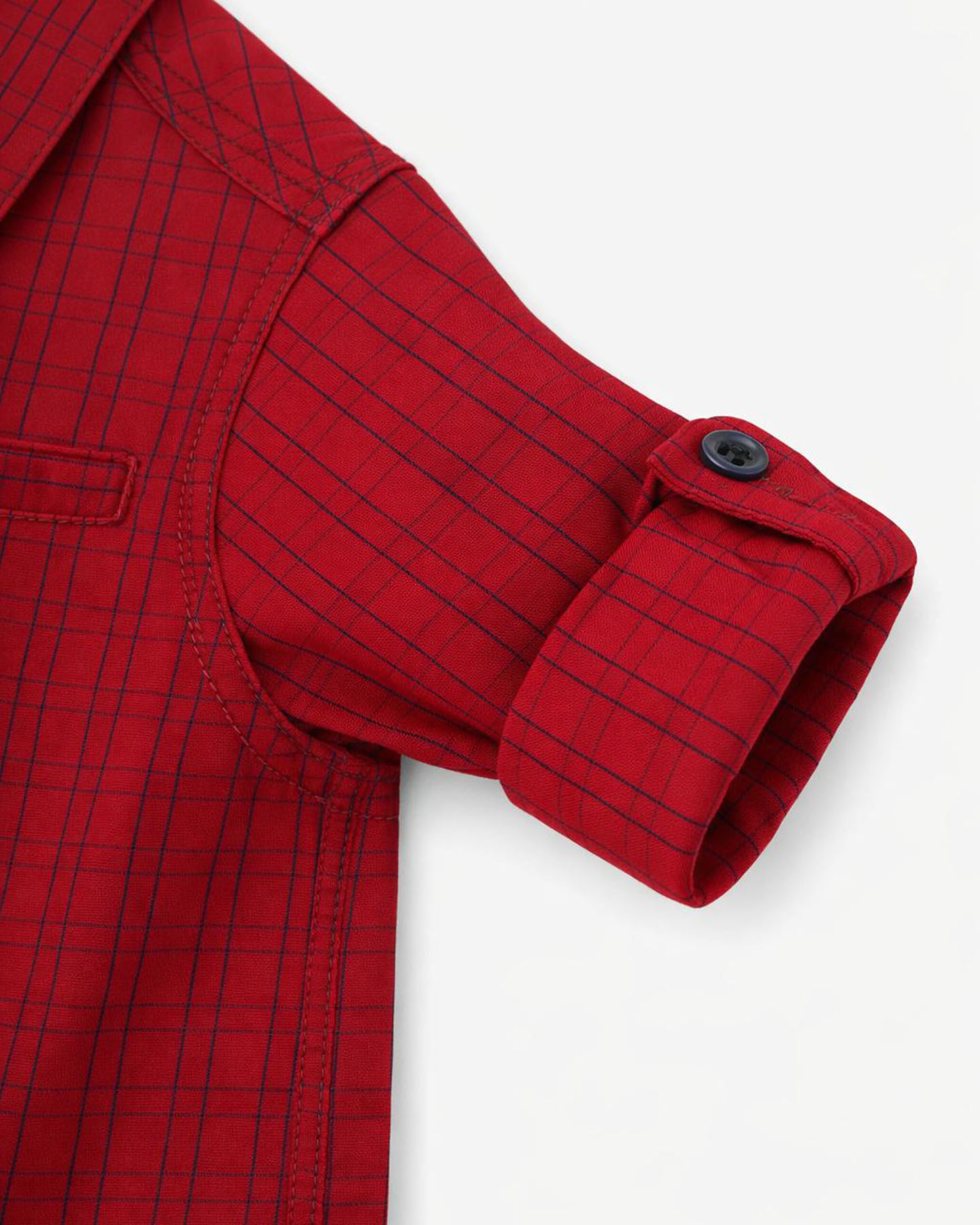 Erkek Çocuk Kırmızı Gömlek ve Siyah Jean Pantolon Takımı