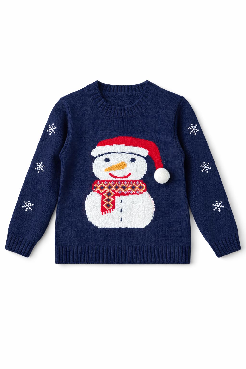 Erkek Çocuk Yılbaşı Kardan Adam Desenli Triko Kazak