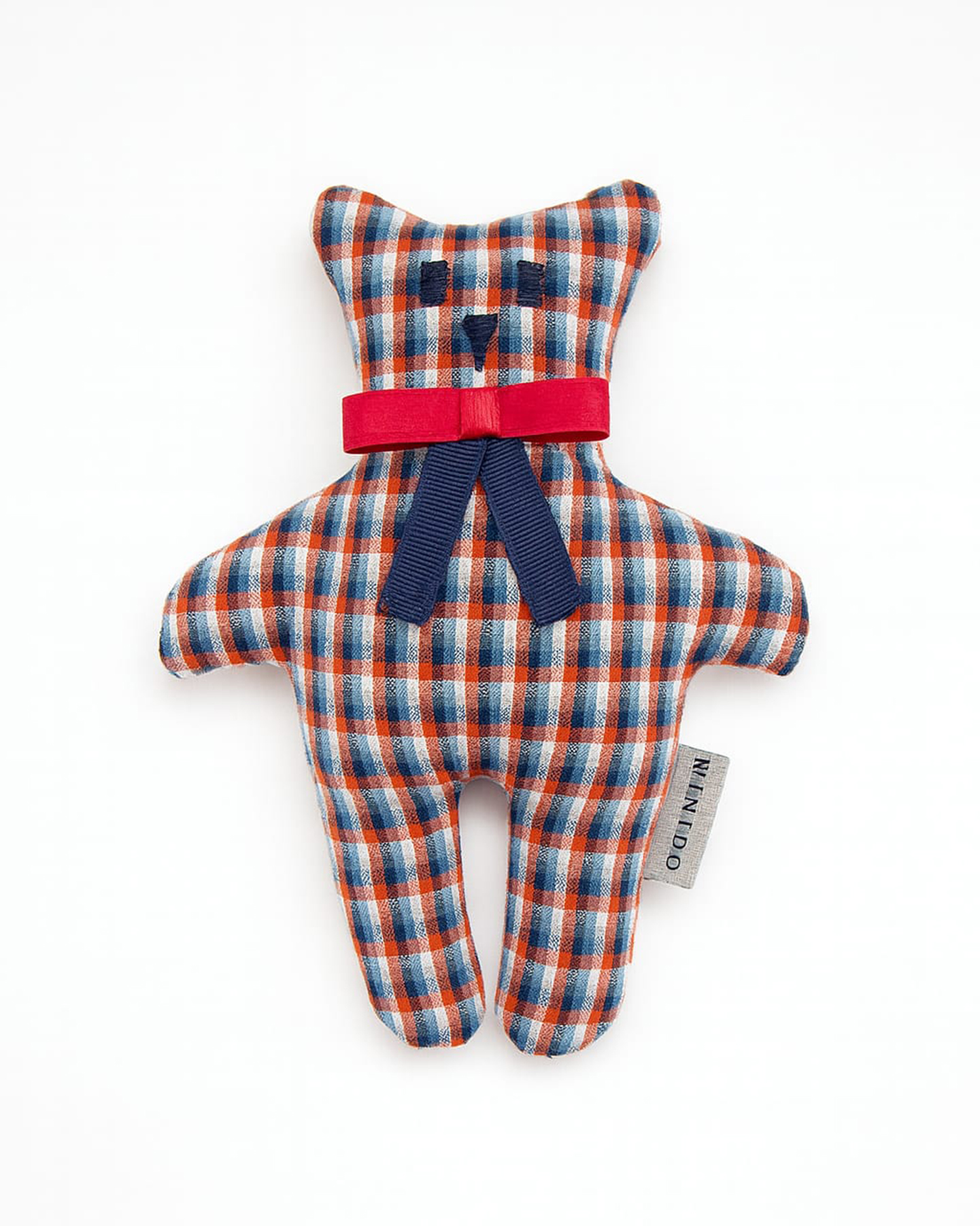 Kareli Kumaşlı El Yapımı Peluş Oyuncak Ayıcık – Kırmızı Lacivert Desenli 17 cm
