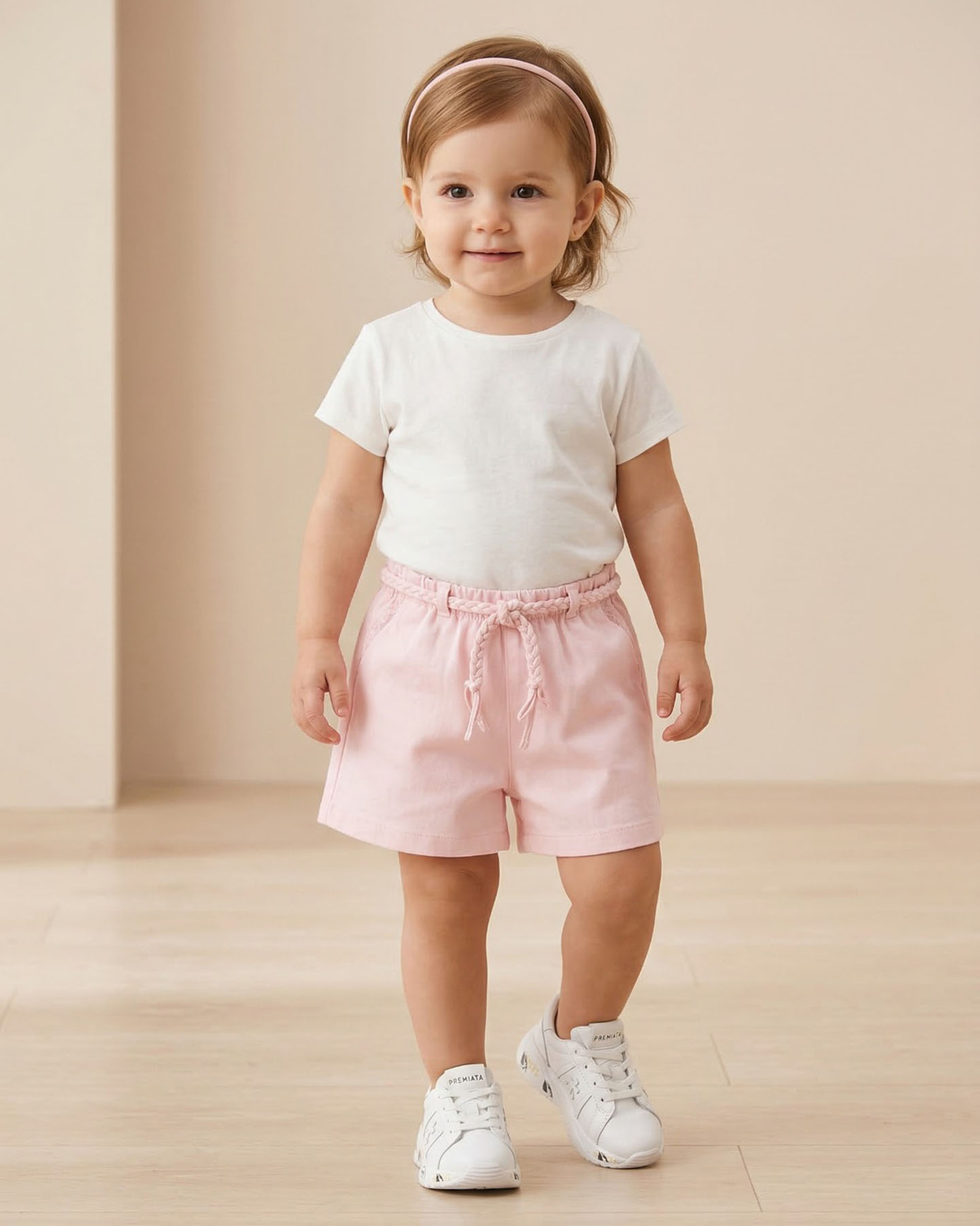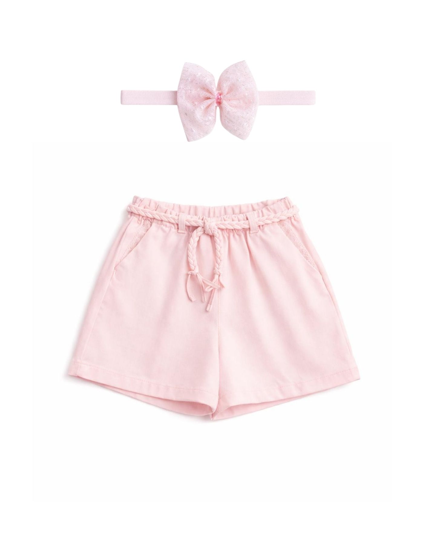 Kız Bebek Bandana Hediyeli Beli Lastikli Pembe Şort