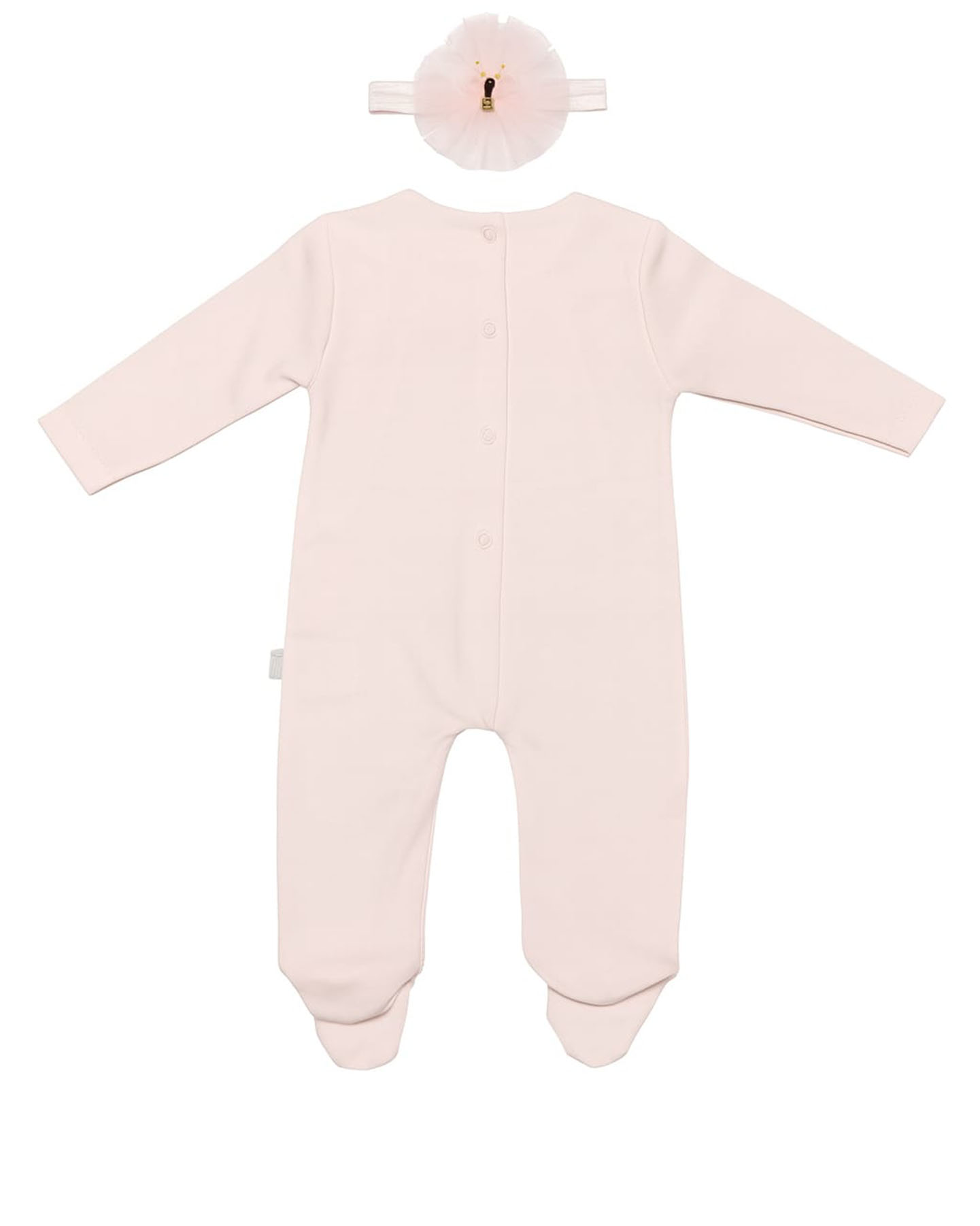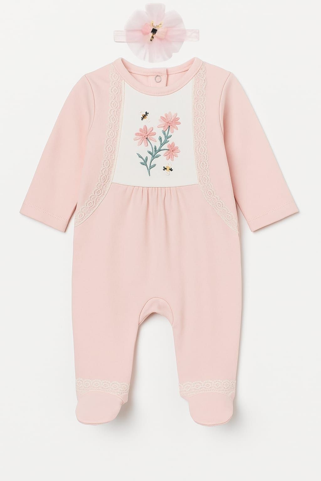 Kız Bebek Bandana Hediyeli İşlemeli Pembe Tulum