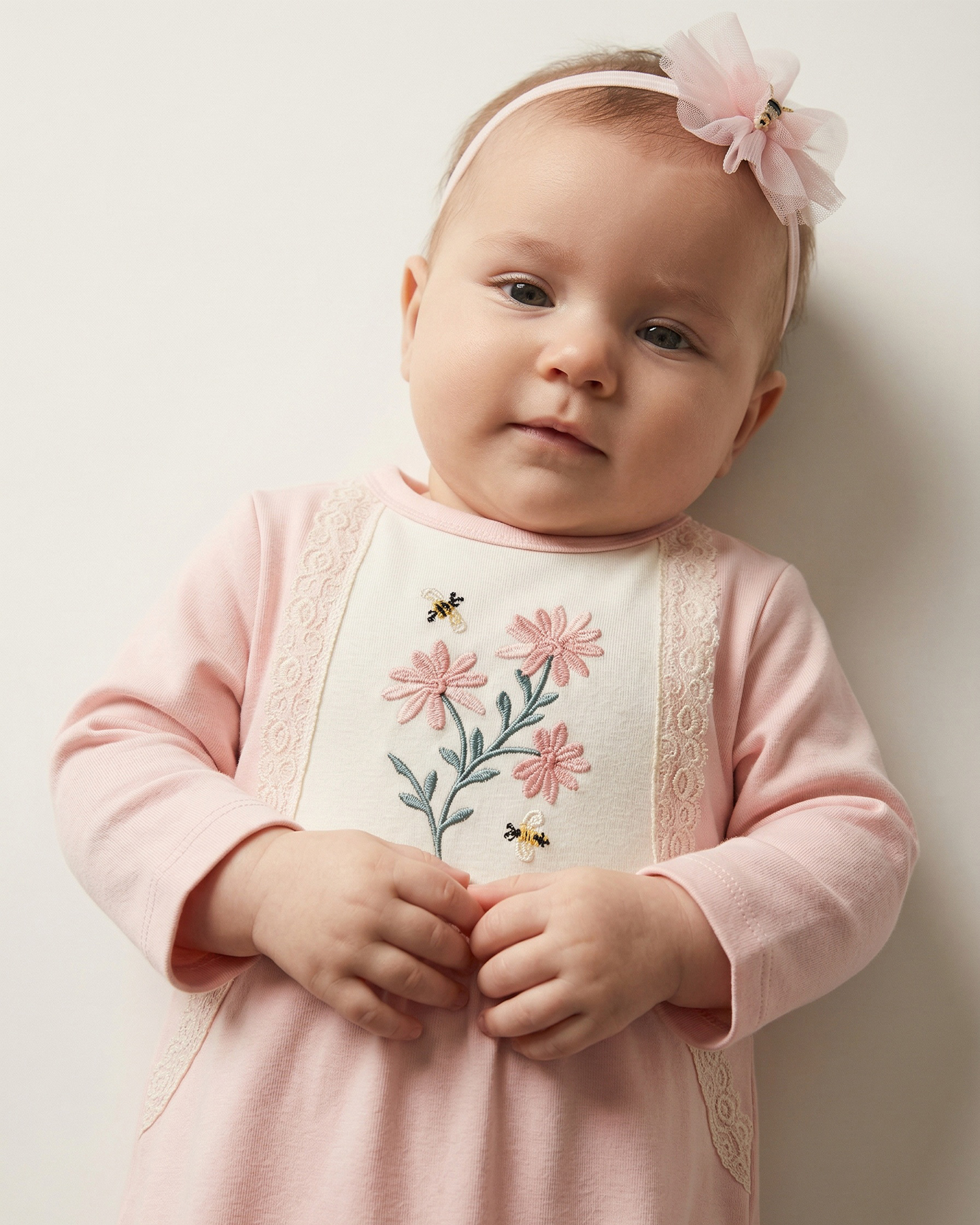 Kız Bebek Bandana Hediyeli İşlemeli Pembe Tulum için 1 değerlendirme