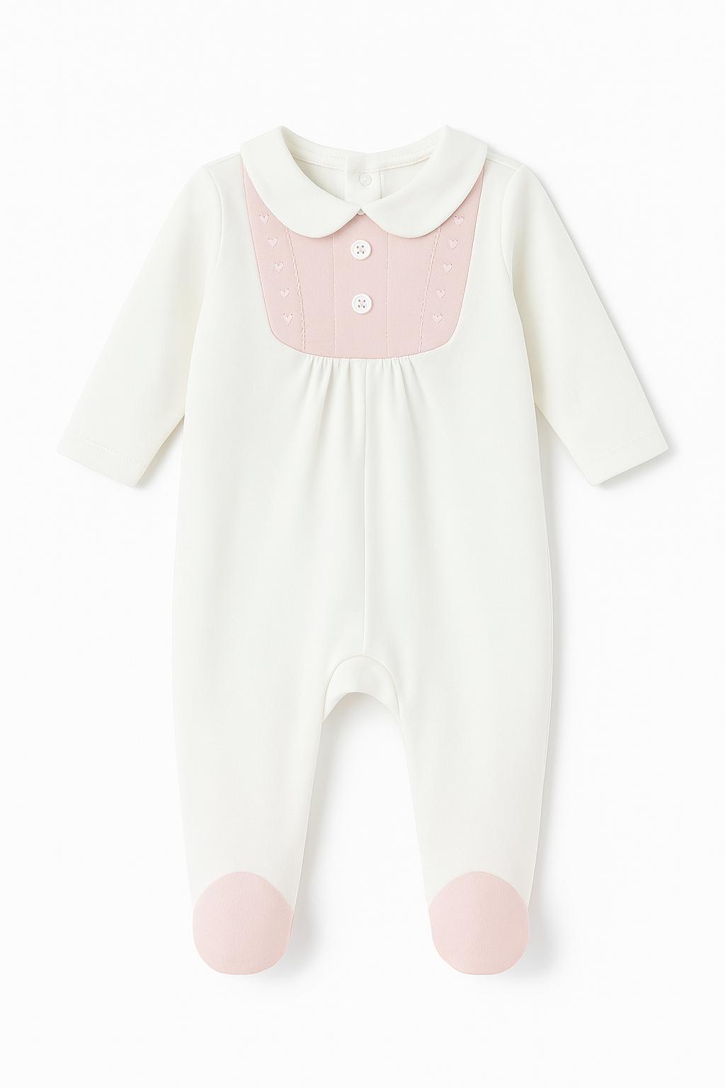 Kız Bebek Beyaz Bebe Yaka Ayaklı Tulum