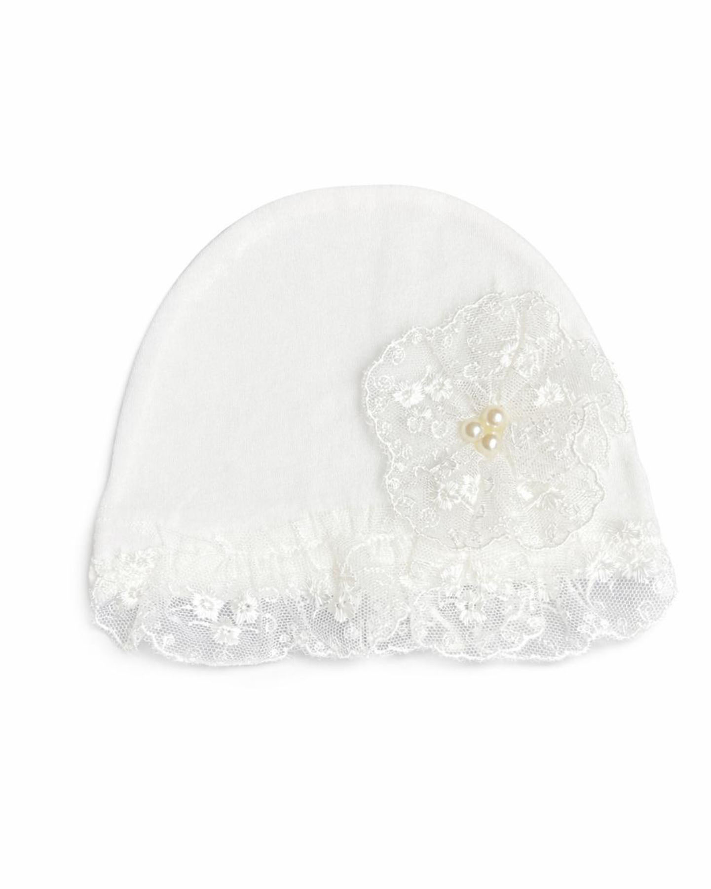Kız Bebek İncili Beyaz Dantelli Yenidoğan Şapka