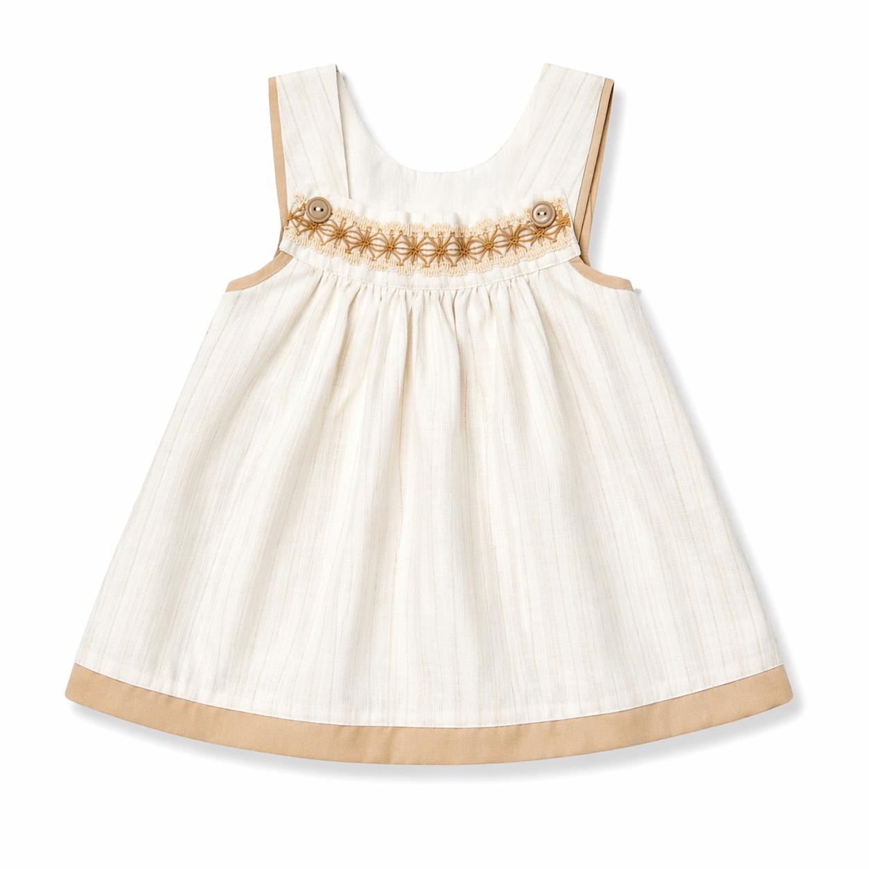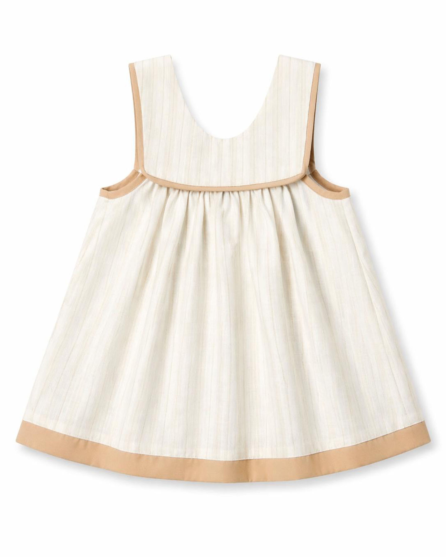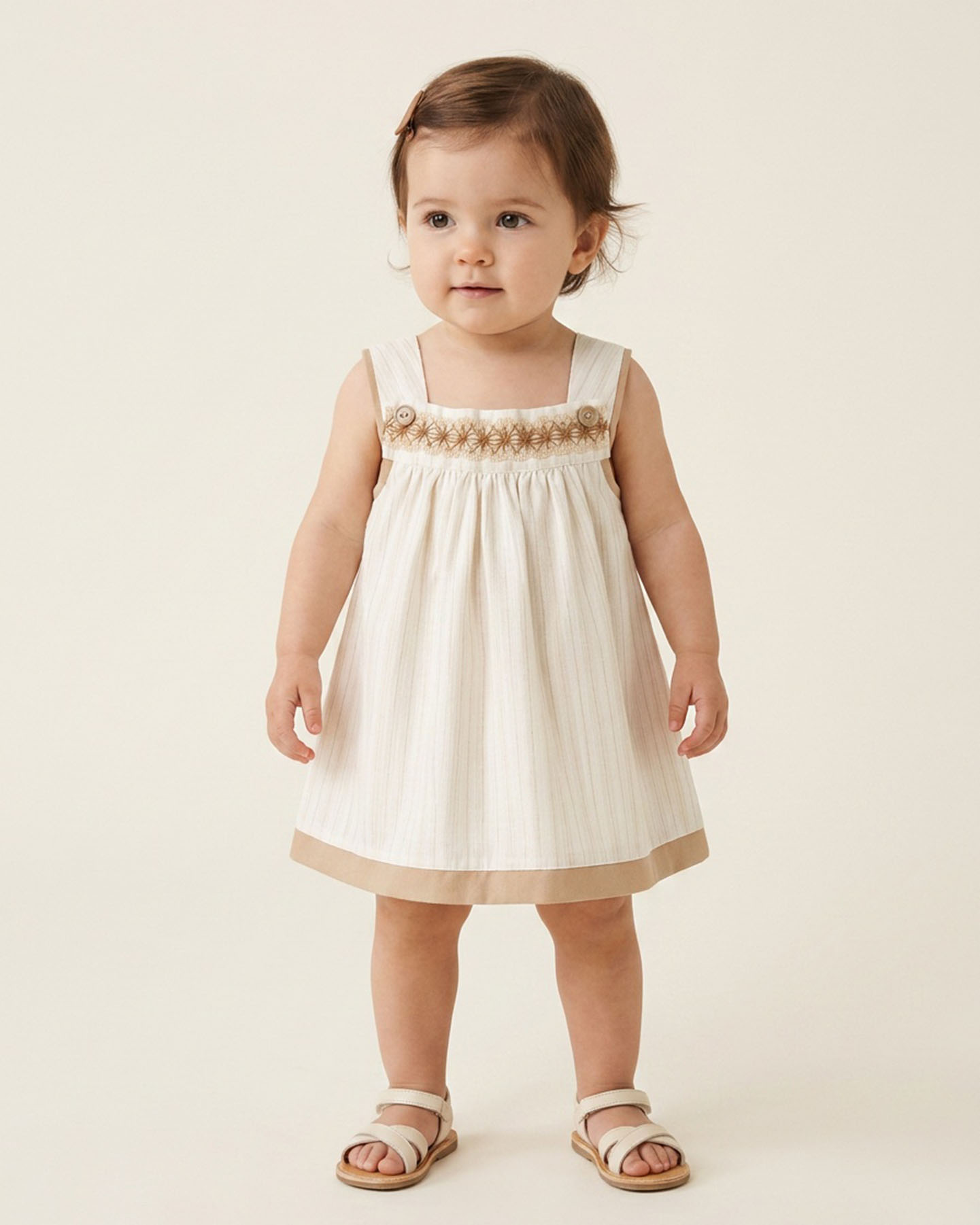 Kız Bebek Dantel Detaylı Bej Renk Çizgili Jile Elbise