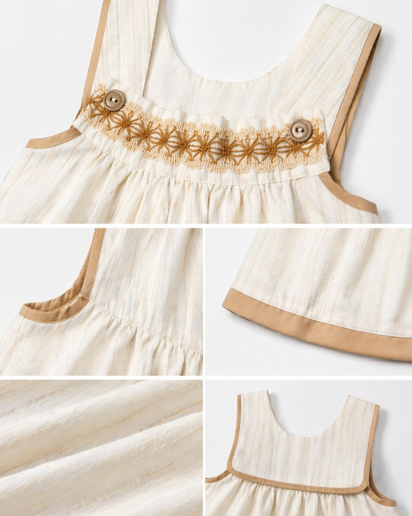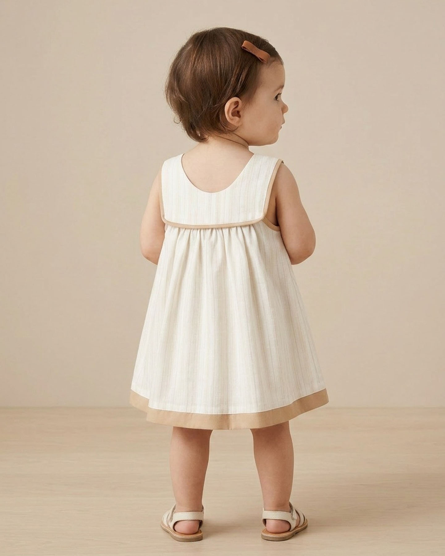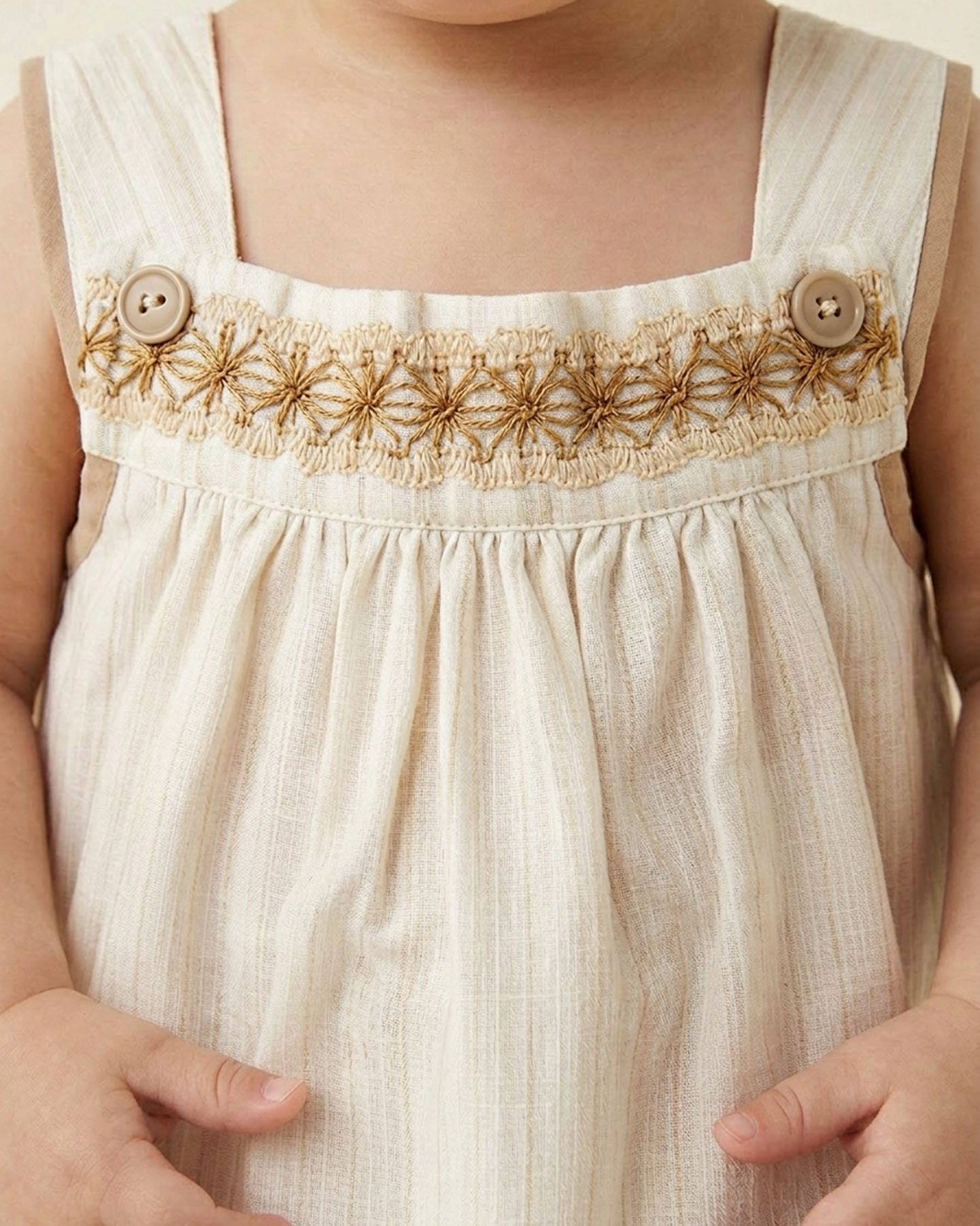 Kız Bebek Dantel Detaylı Bej Renk Çizgili Jile Elbise
