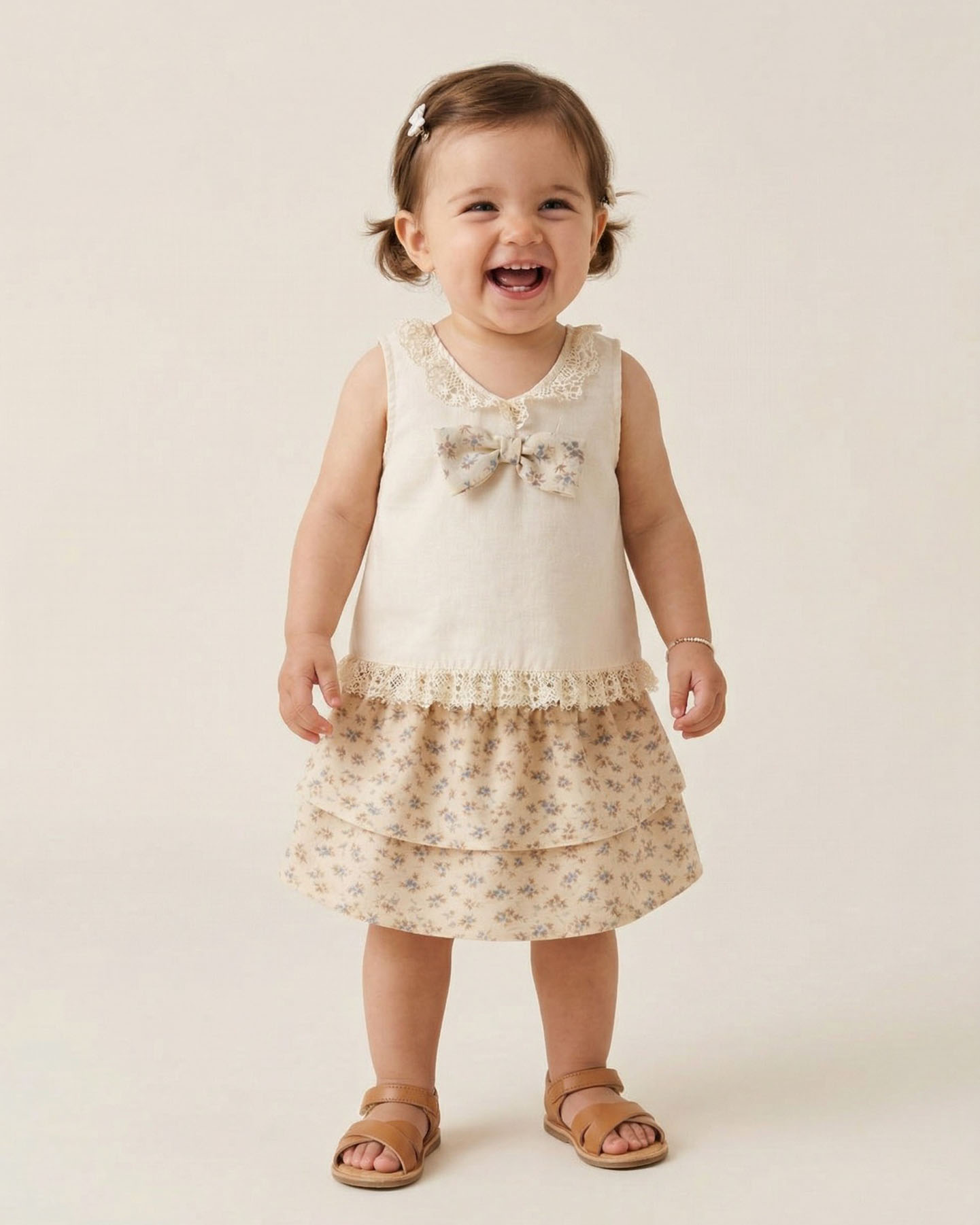 Şık ve Zarif Çiçek Desenli Katlı Etek Modeli ile Hafif Yumuşak Dokulu Kumaşı İle Çocuklarınızın Cildine Uyum Sağlar.