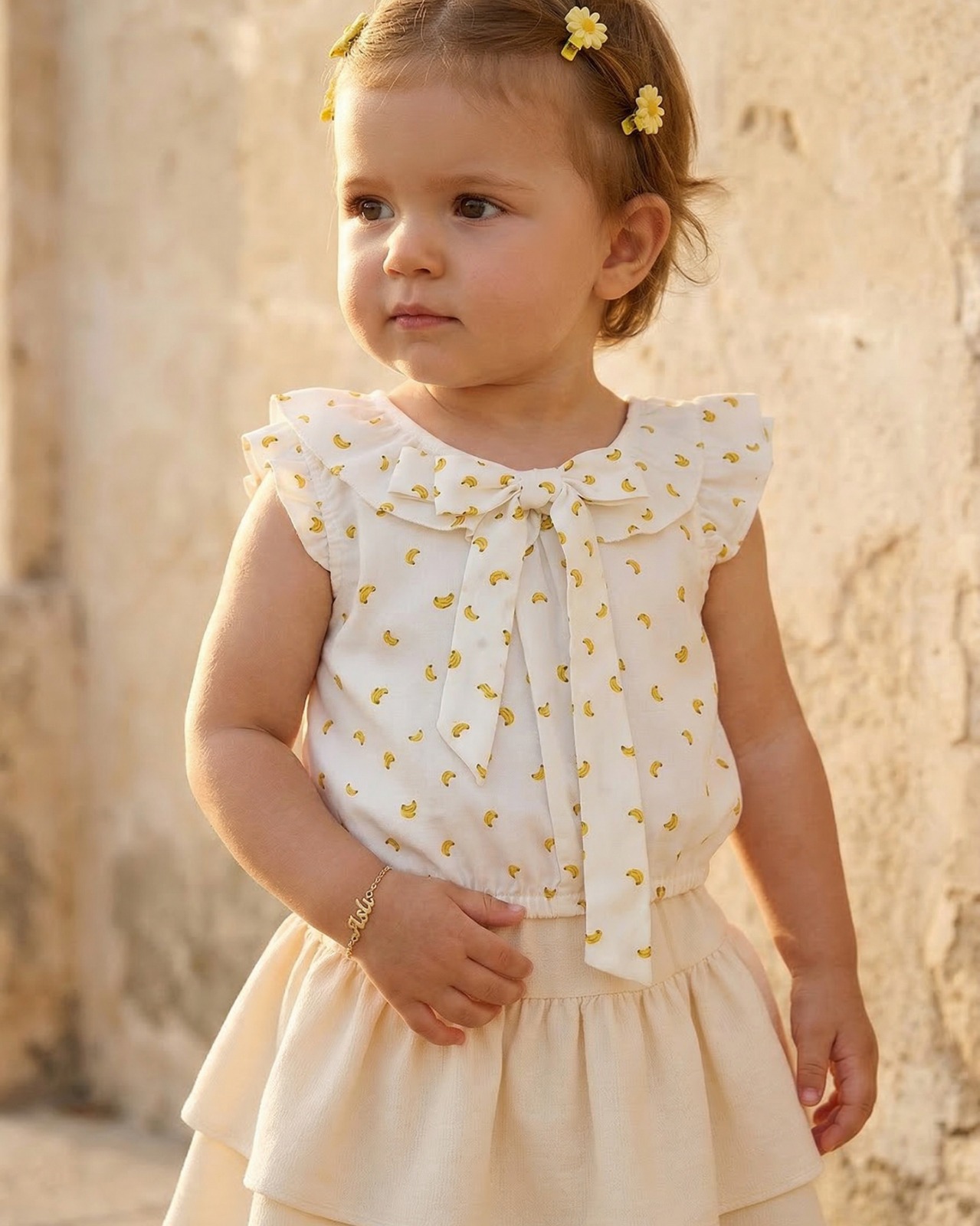 Kız Bebek Eteği Katlı Desenli Arka Bağcıklı 2’li Takım