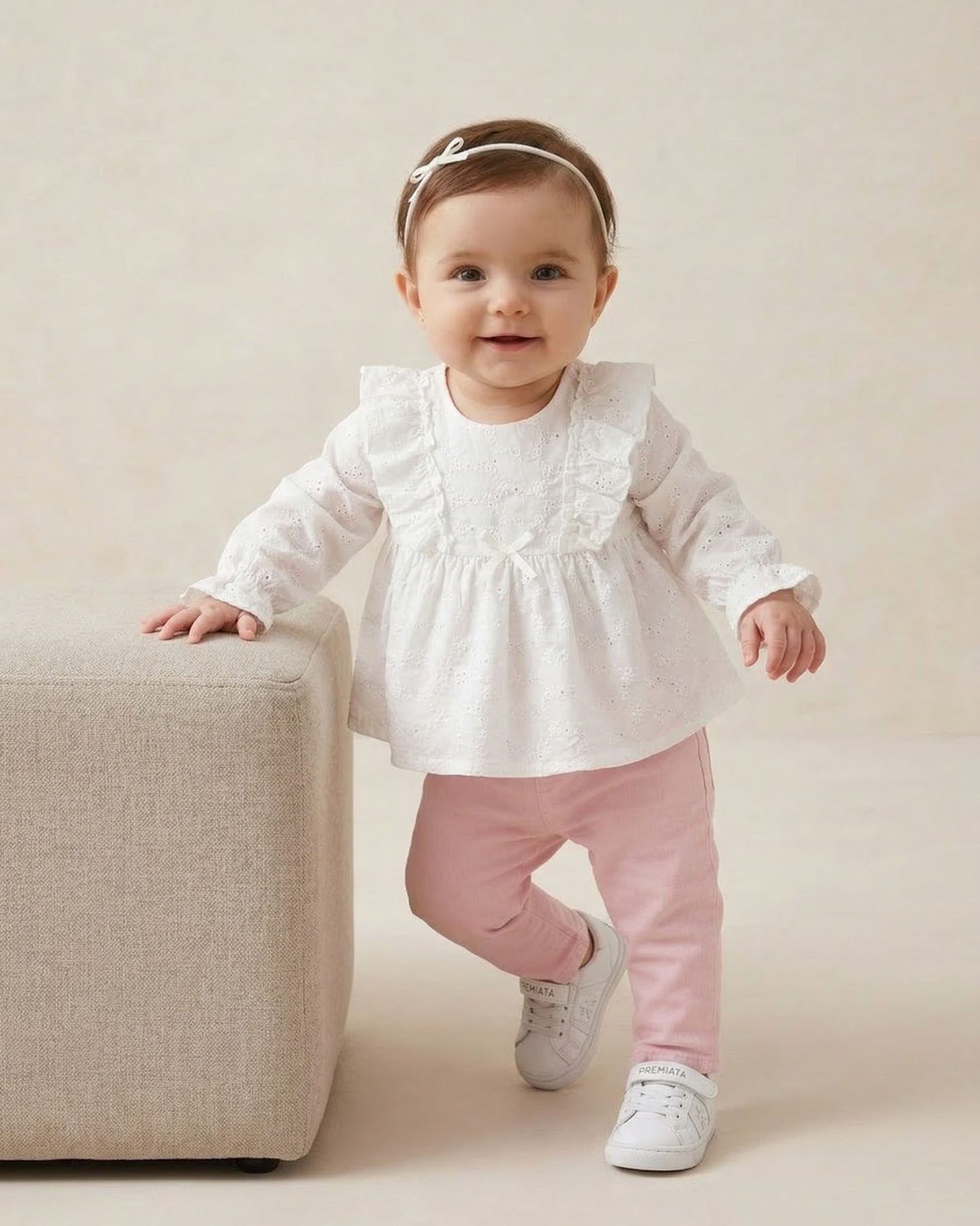 Kız Bebek Fistolu Gömlekli ve Pantolonlu İkili Takım