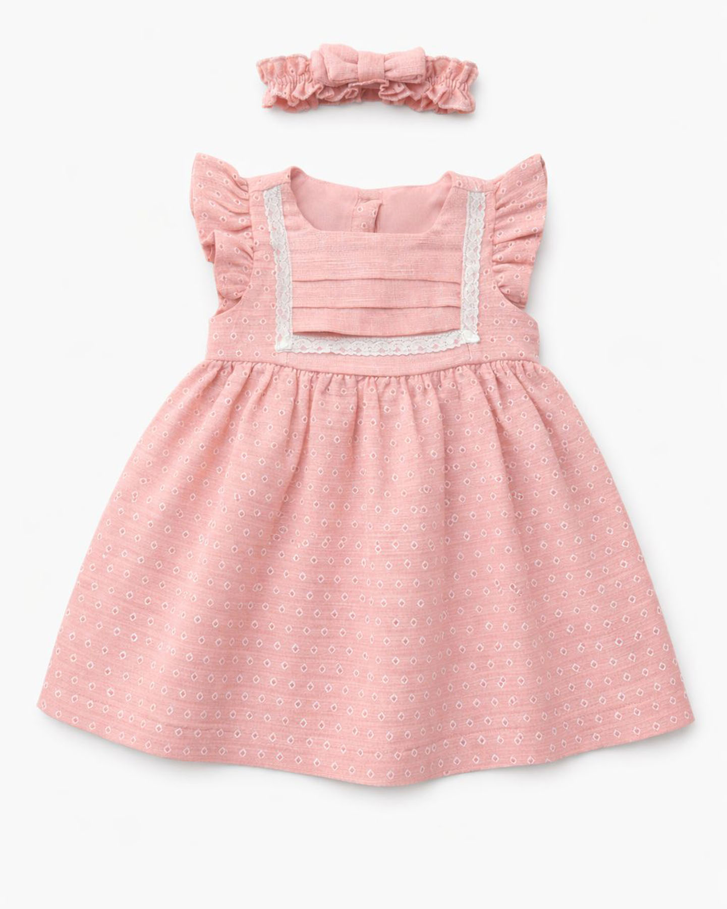 Bu ürünün birden fazla varyasyonu var. Seçenekler ürün sayfasından seçilebilirKız Bebek Pembe Renk Dantel Detaylı Jile Elbise