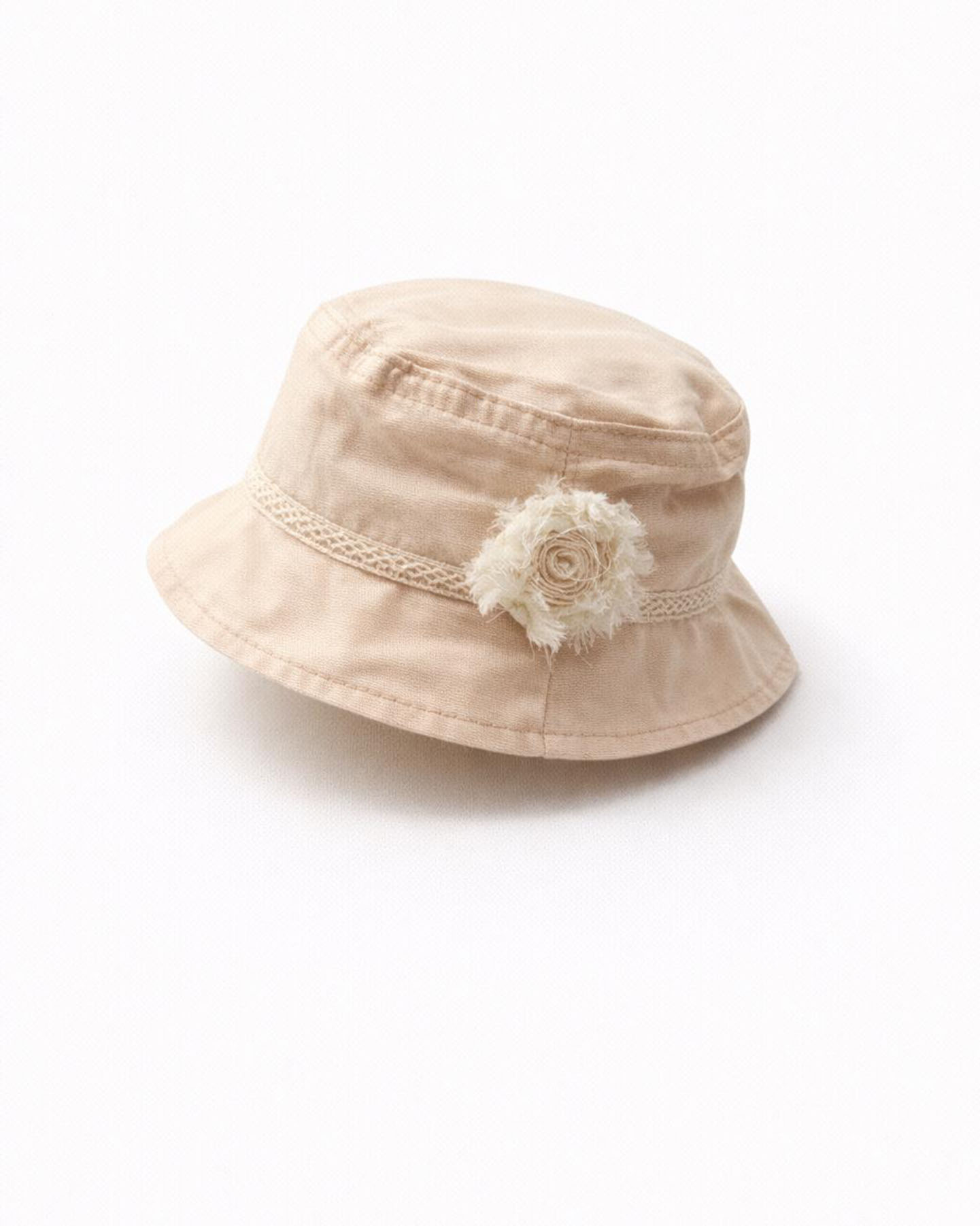 Krem tonlarında tasarlanmış bu şık bucket şapka, yumuşak dokulu kumaşı ve zarif çiçek detayıyla çocuk kombinlerine doğal ve tatlı bir görünüm kazandırır. Hafif yapısı sayesinde gün boyu konfor sağlar, güneşten korurken stil sahibi bir tamamlayıcı olur. Günlük kullanım ve özel günler için ideal bir aksesuardır.