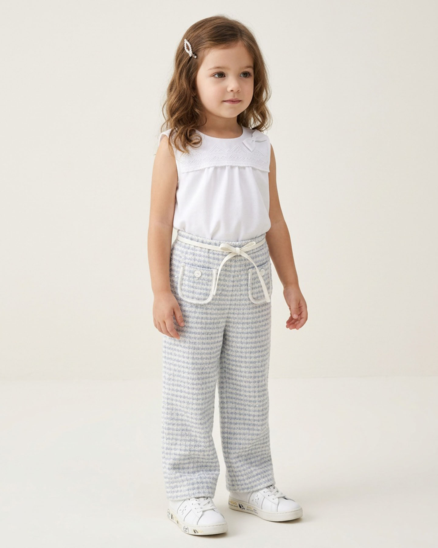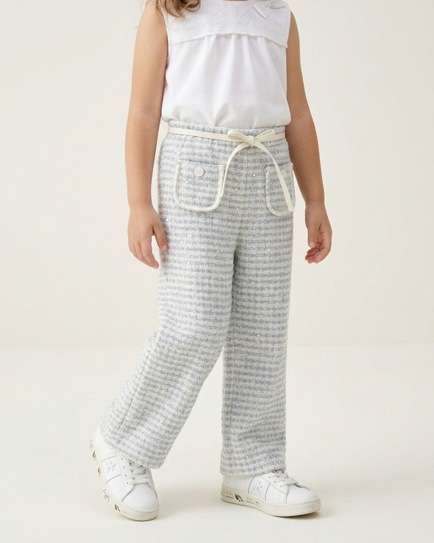 Kız Çocuk Lastikli Çizgi Detaylı Bol Paça Penye Pantolon
