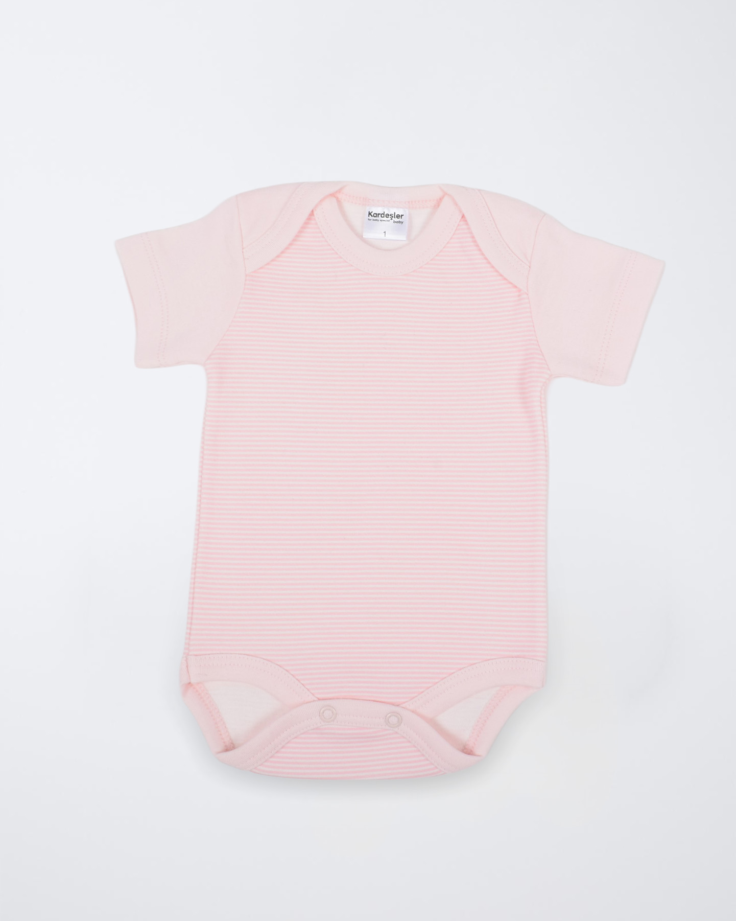 Kız Bebek Yarım Kol Pembe Çizgili Çıtçıt Body