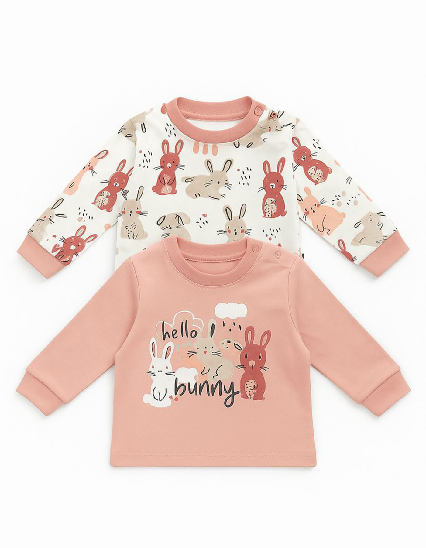 Kız Bebek Yuvarlak Yaka 2’li Omuz Çıtçıtlı Tshirt
