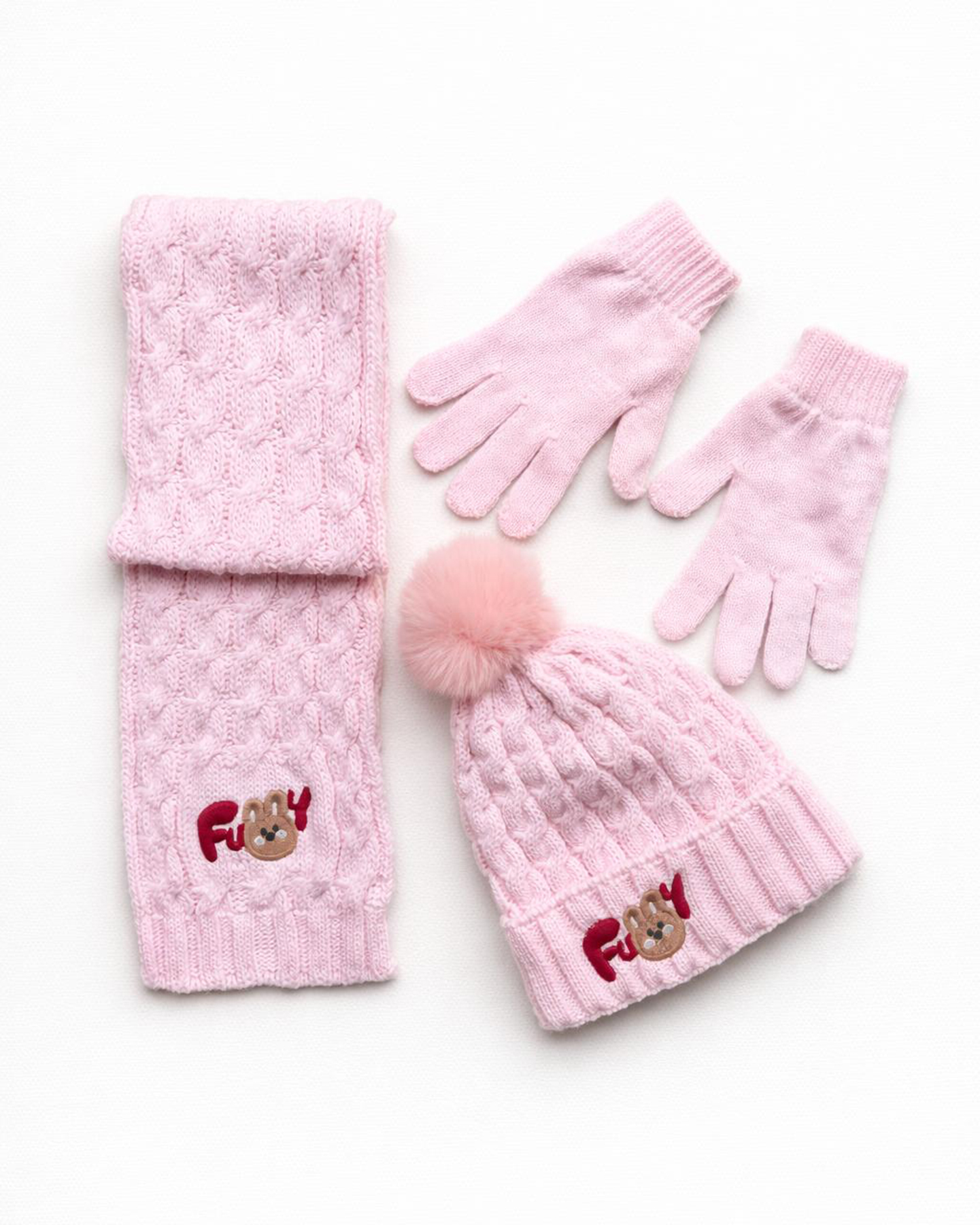 Kız Çocuk 3’lü Bere Eldiven Atkı Seti – Pembe- 4-8 Yaş