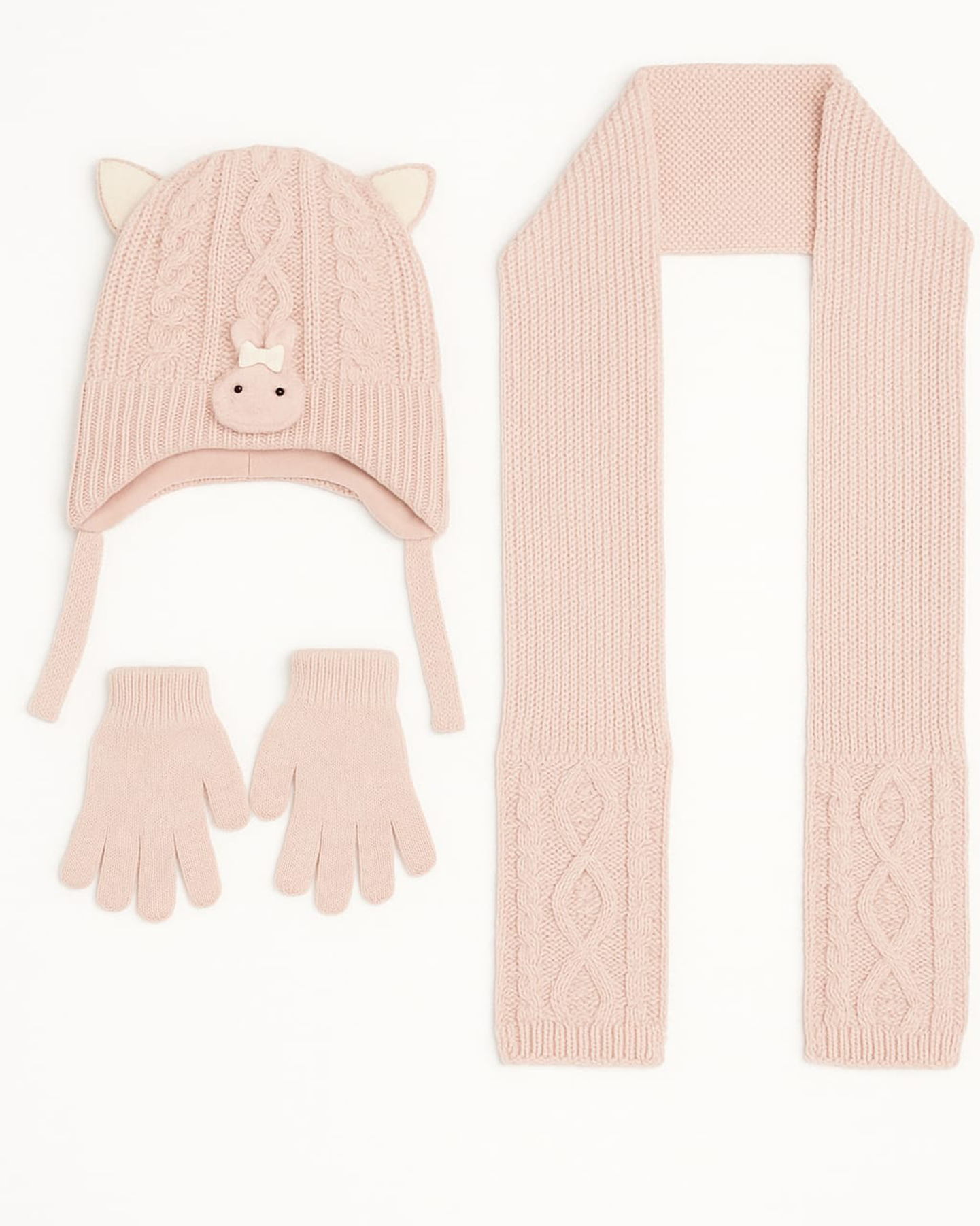 Kız Çocuk 3’lü Bere Eldiven Atkı Seti – Pembe -1-4 Yaş