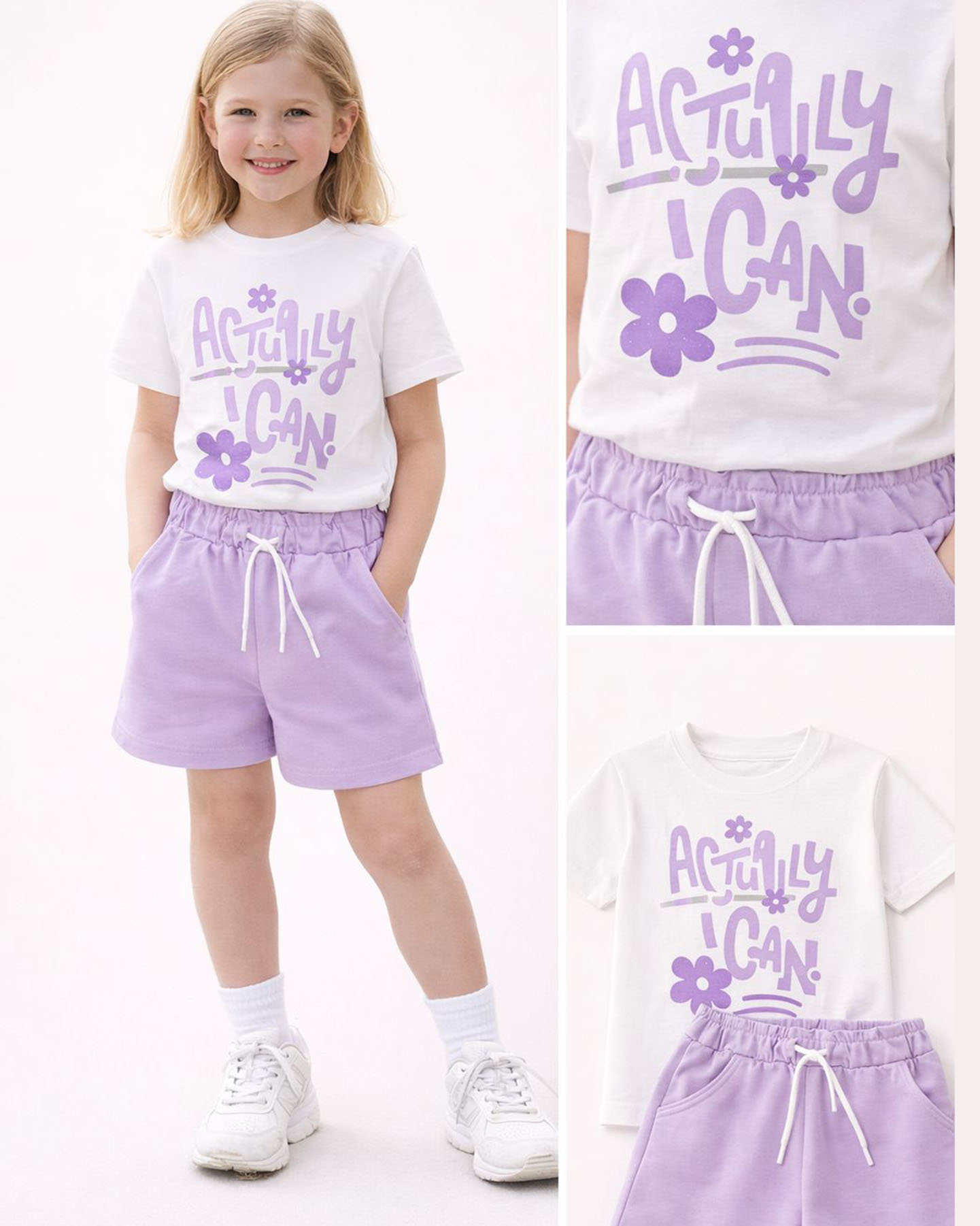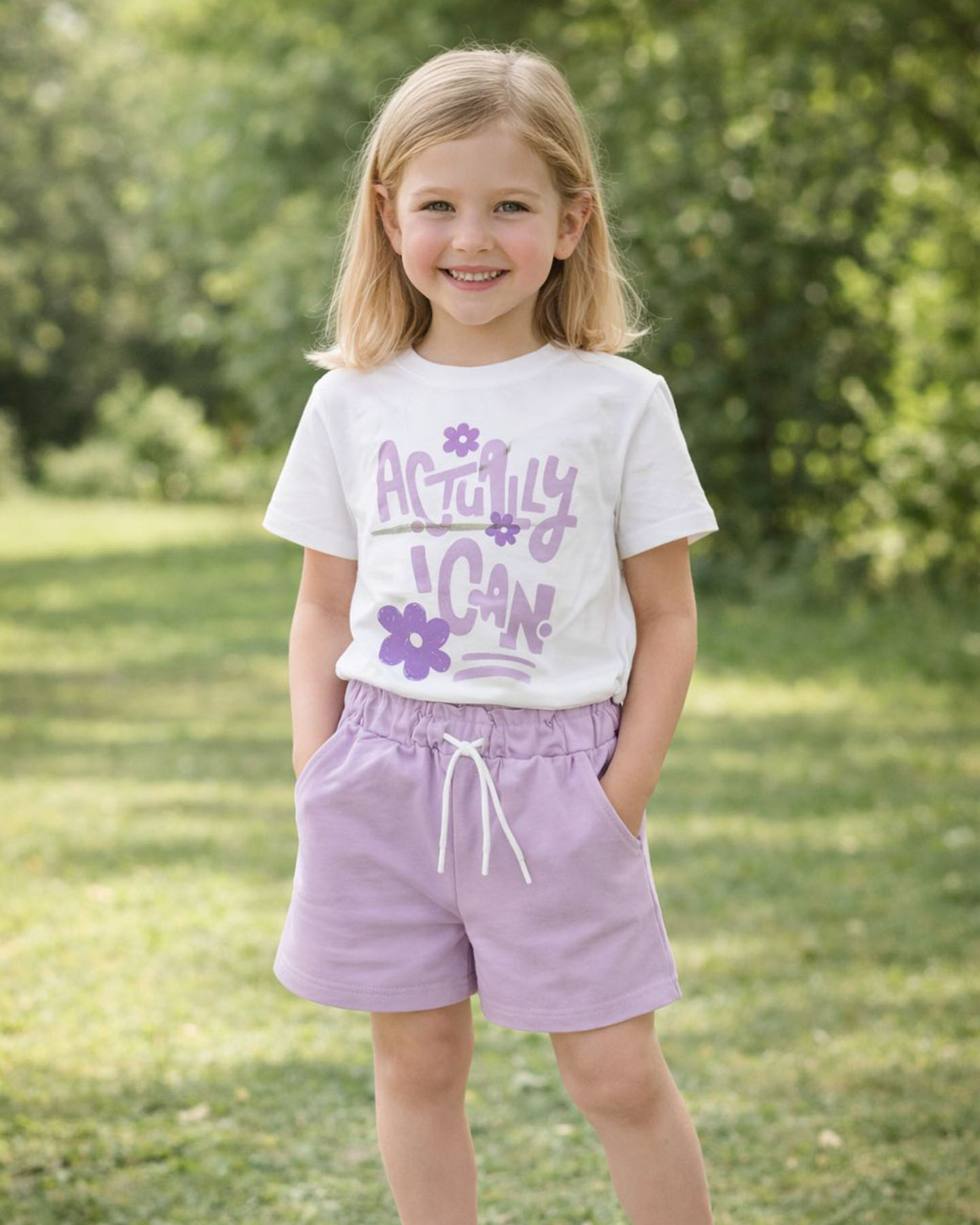 Kız Çocuk Baskılı Lila Renk Şortlu İkili Takım
