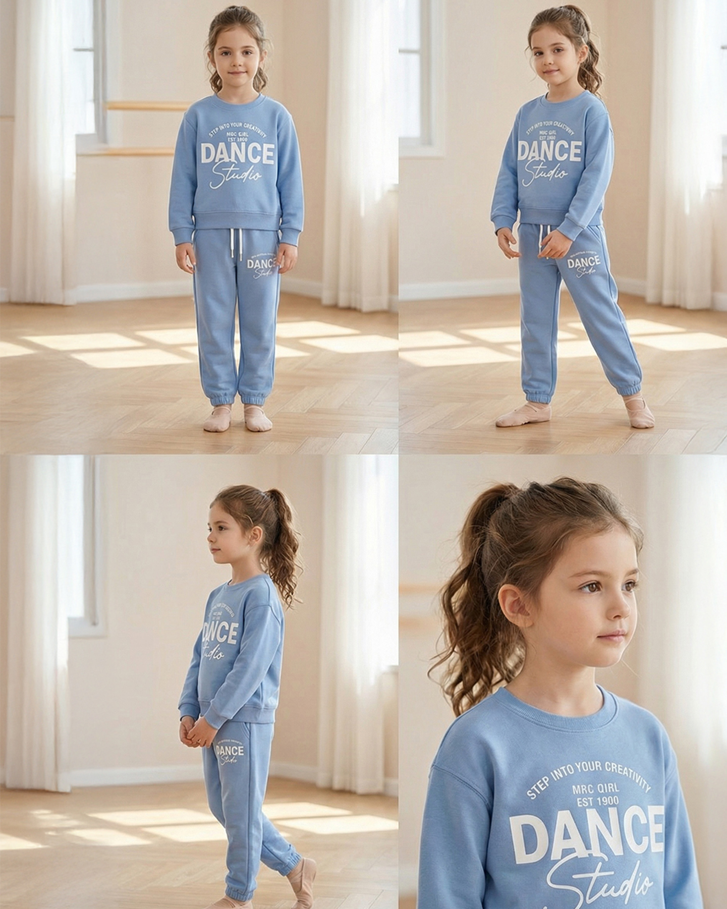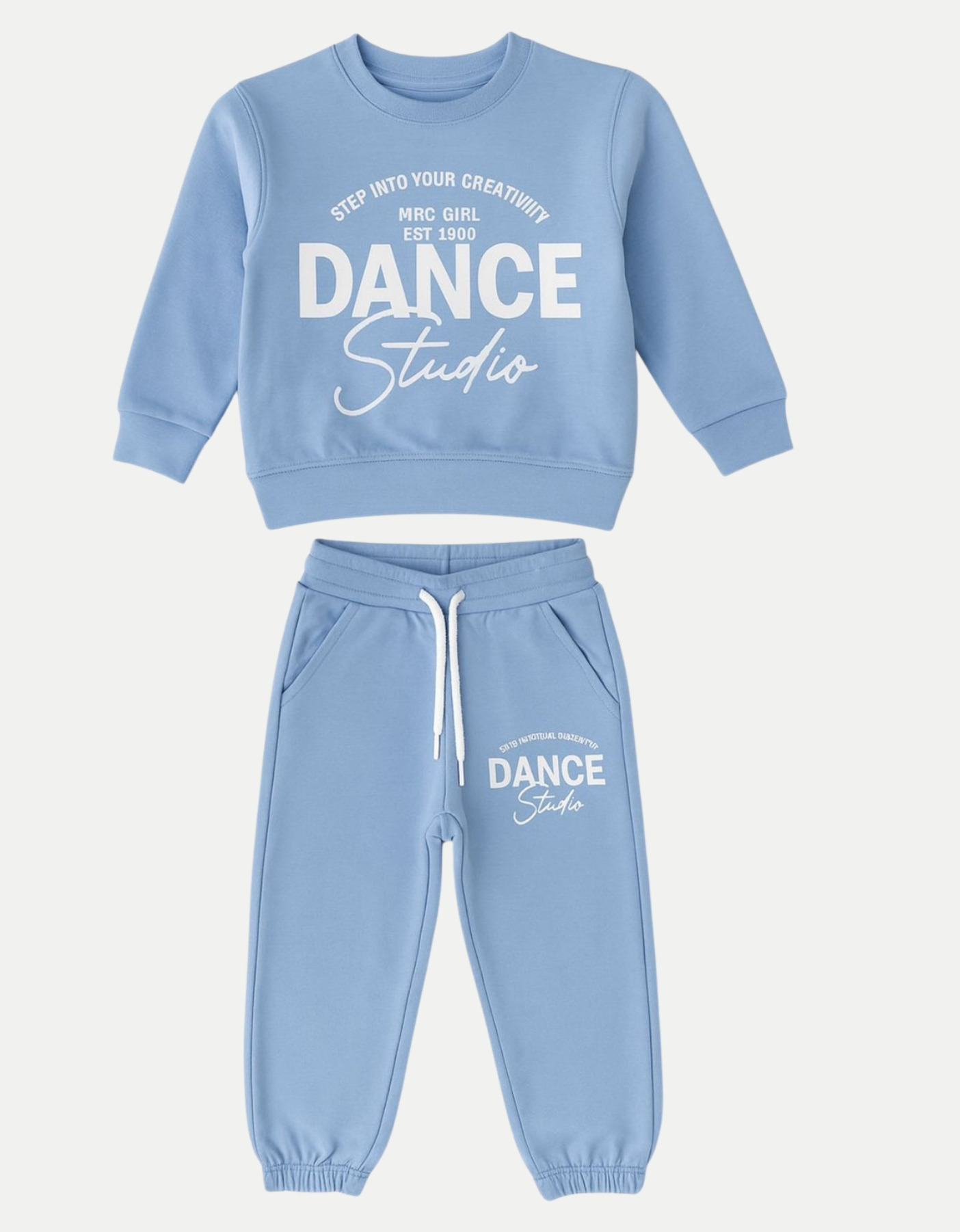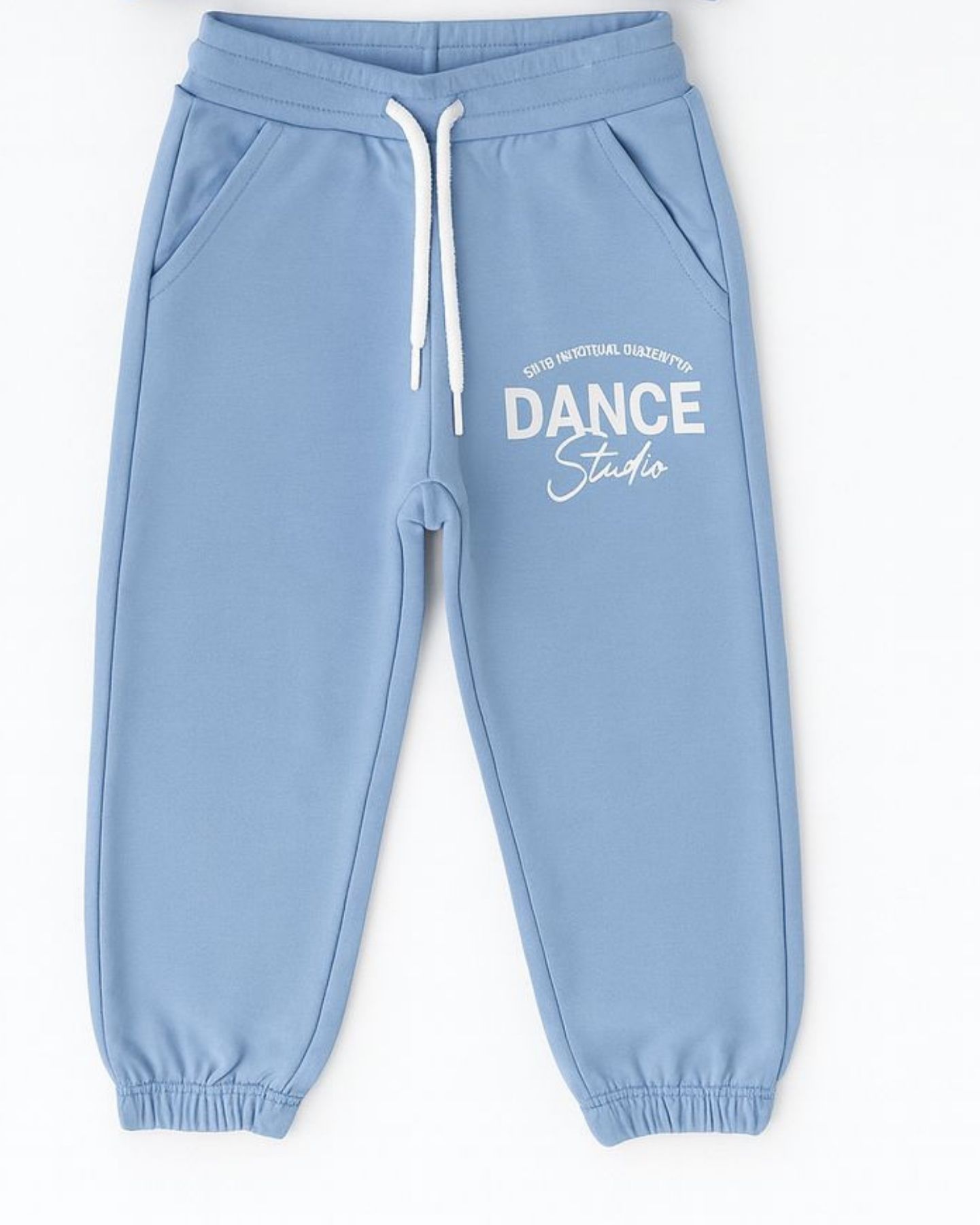 Kız Çocuk Bebek Mavisi Yandan Cepli Baskılı İkili Takım