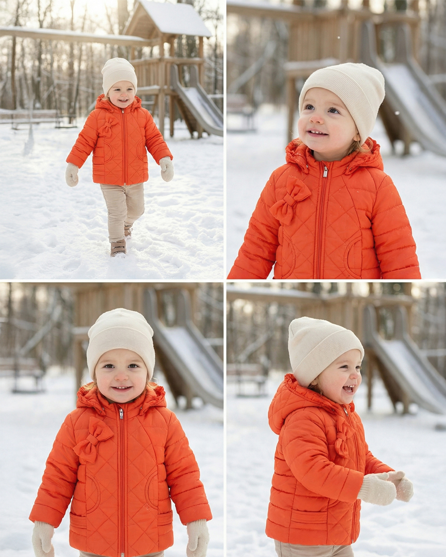 Kız Çocuk Kiremit Renk Kapüşonlu Kışlık Mont