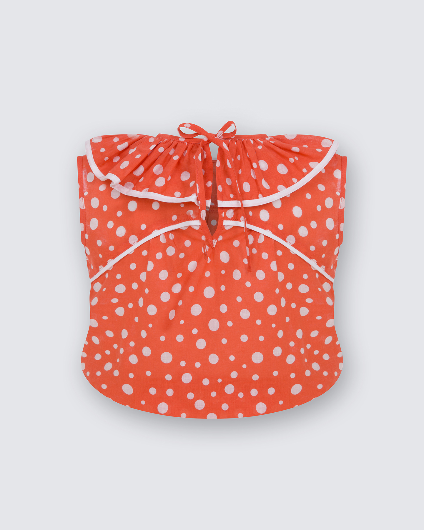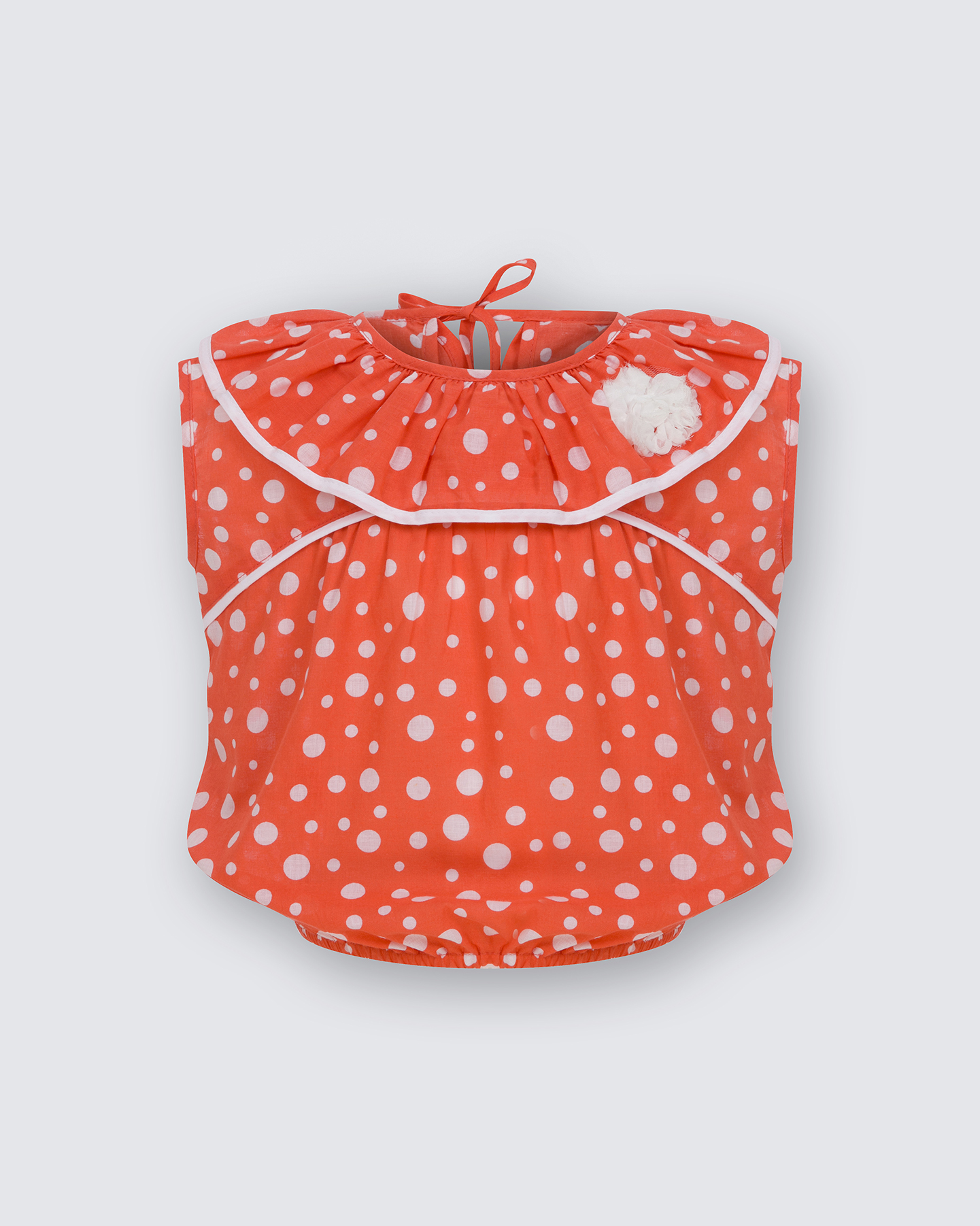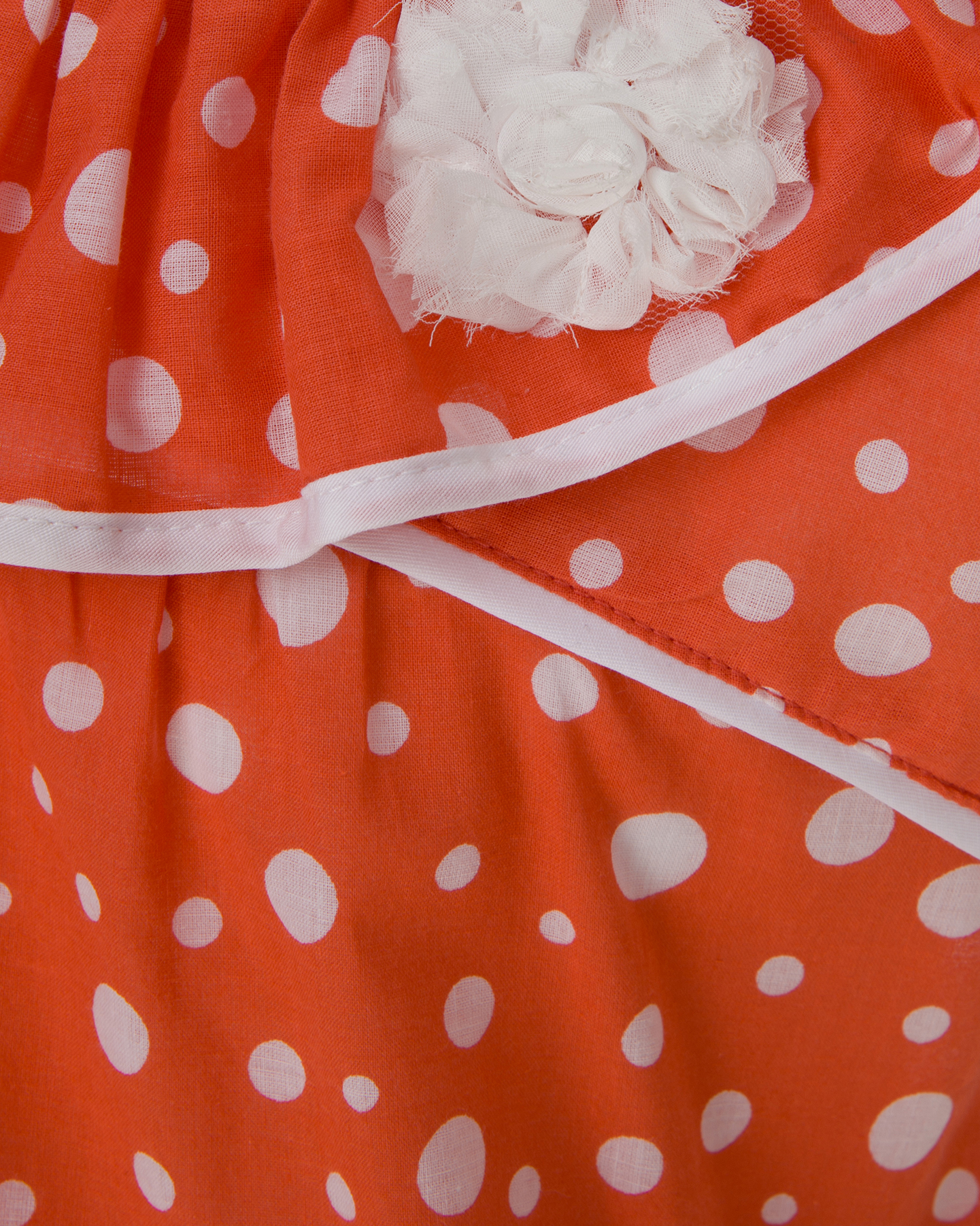 Bu ürünün birden fazla varyasyonu var. Seçenekler ürün sayfasından seçilebilirKız Çocuk Turuncu Beyaz Puantiyeli Yaka ve Gül Detaylı Bluz