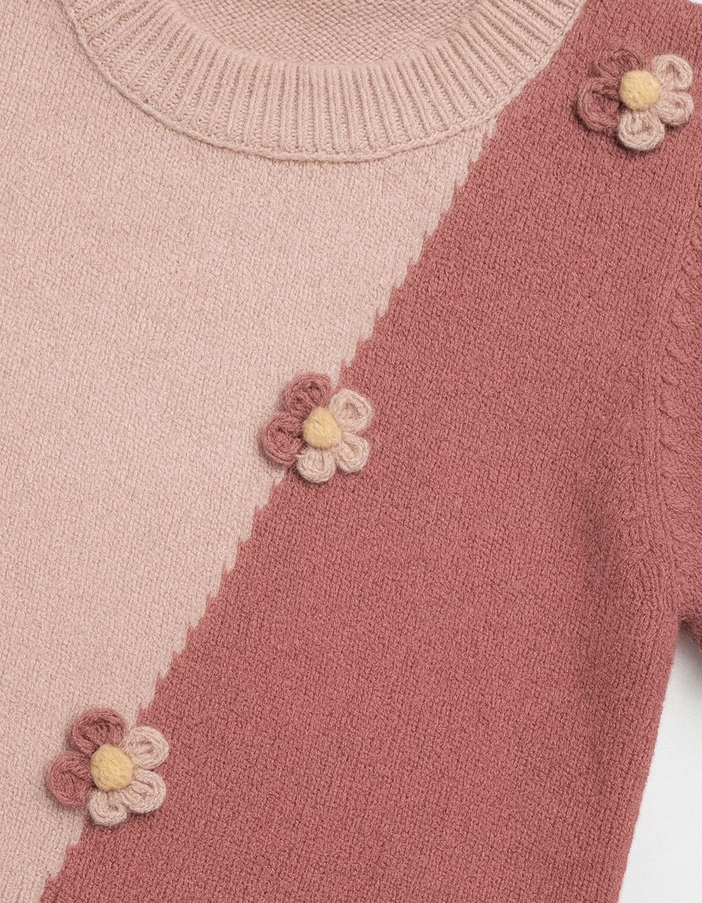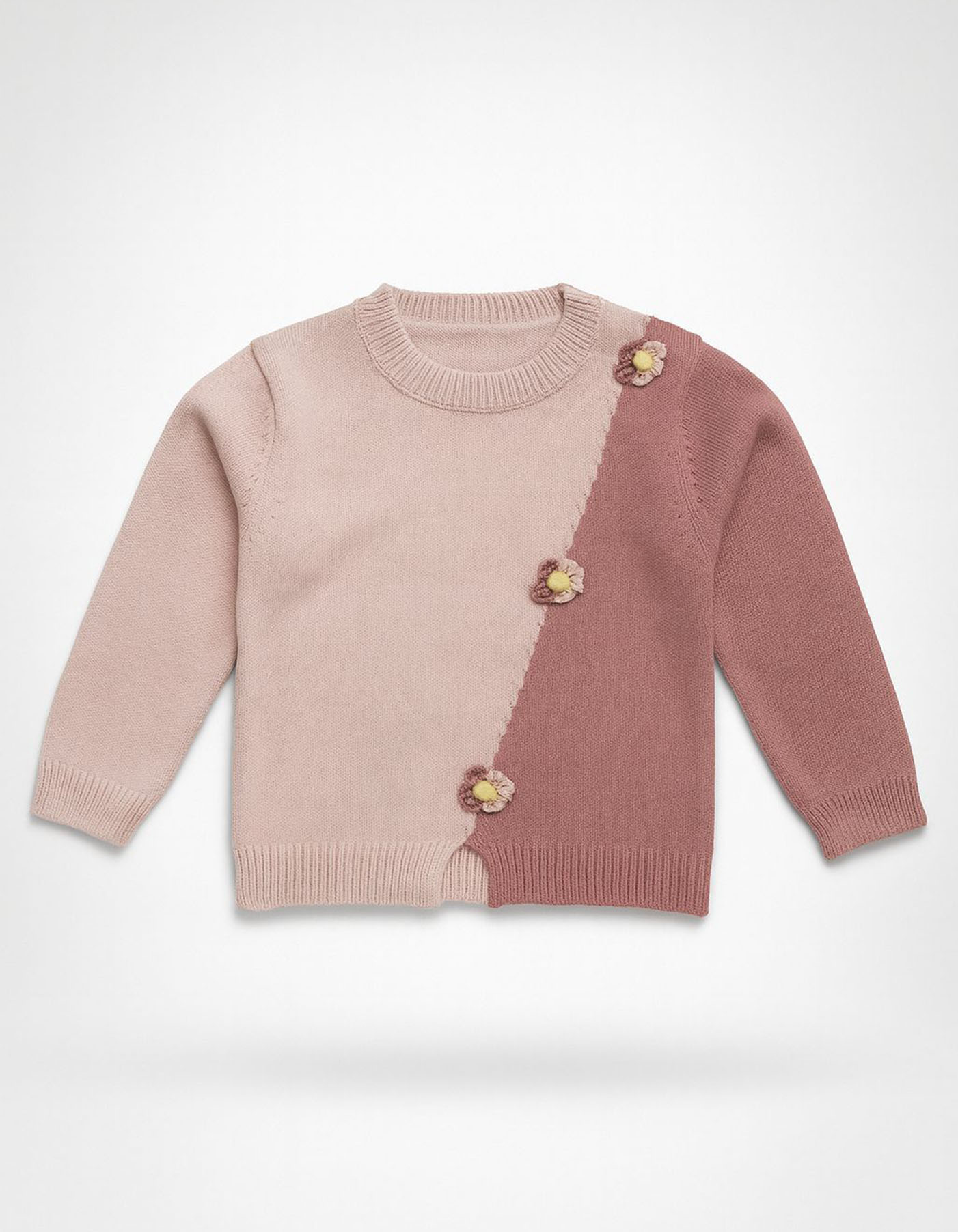 Yumuşak ve esnek yapıya sahip kız çocuk renkli çiçek detaylı kazak, gün boyu konfor sunar.
