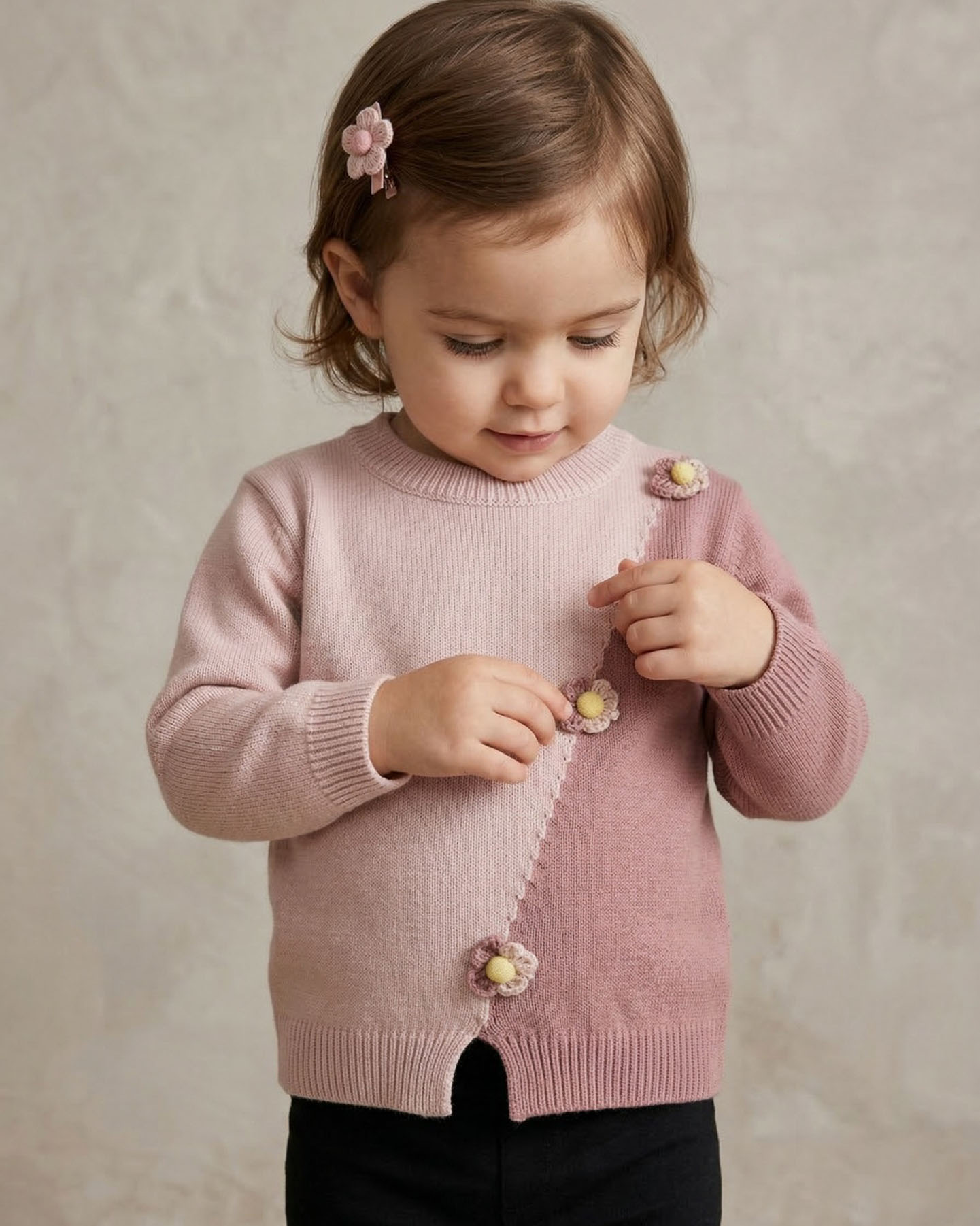 Kız Çocuk Renkli Çiçek Detaylı Kazak