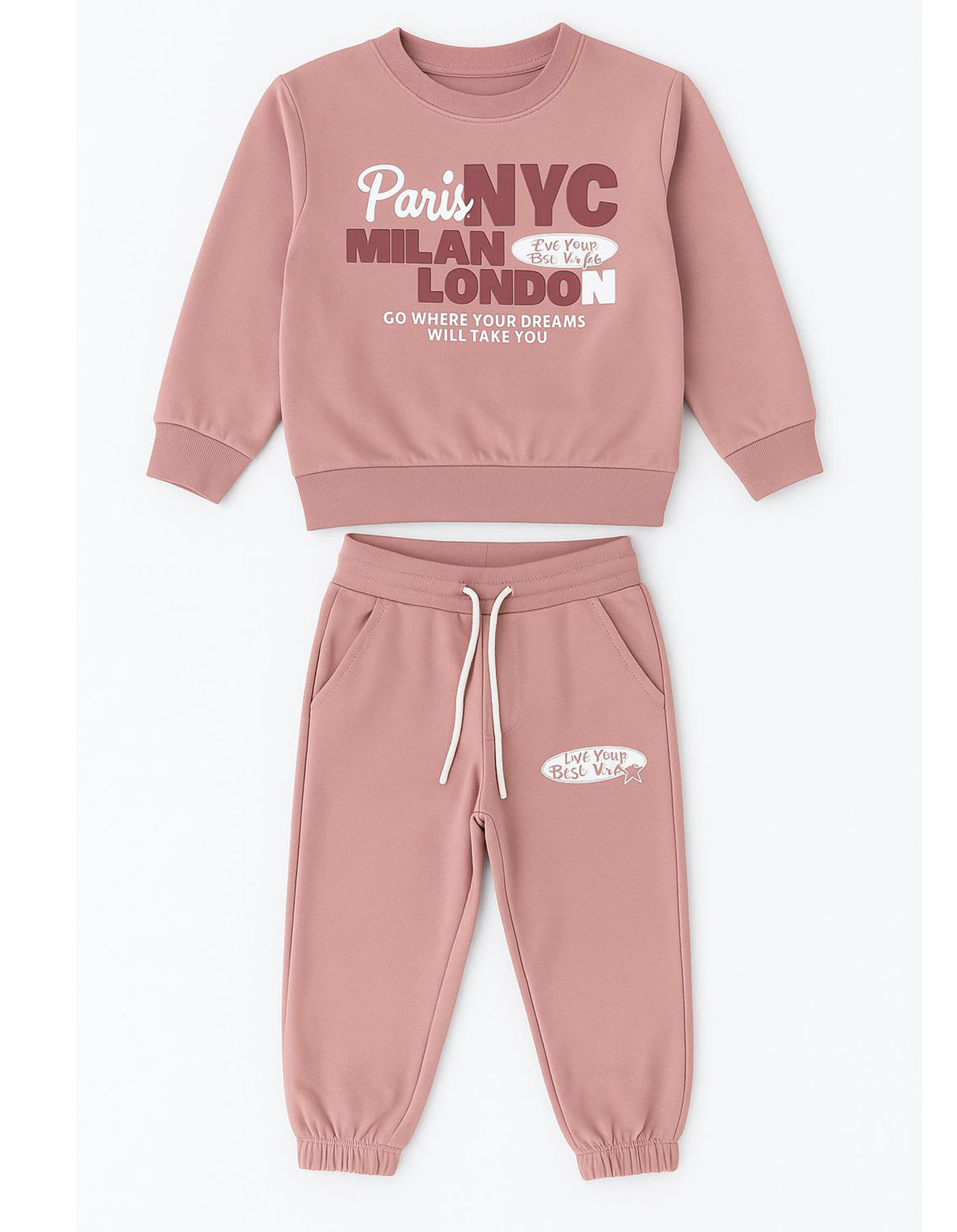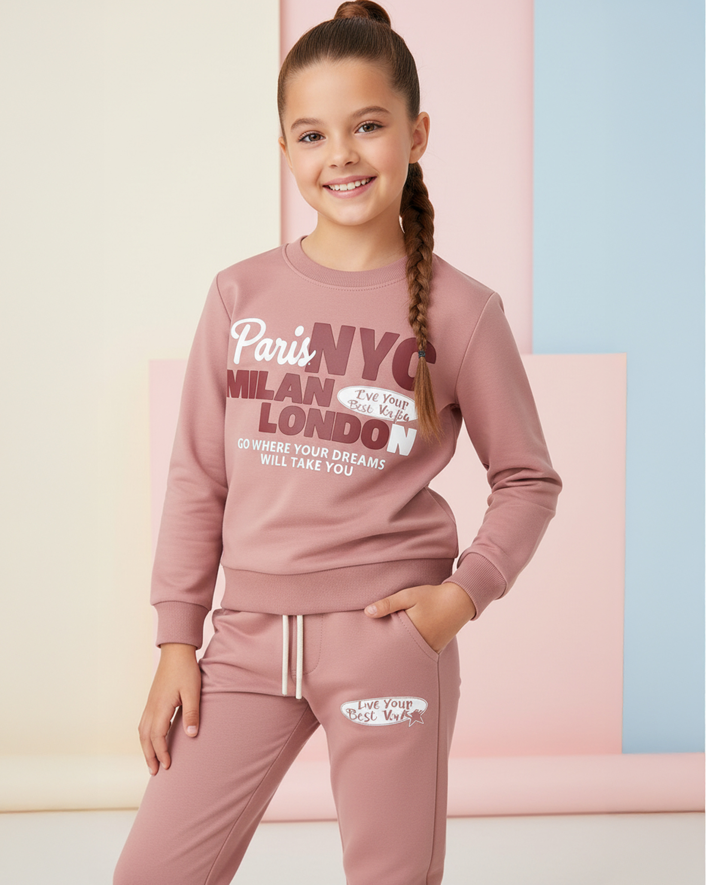 Kız Çocuk Yandan Cepli Paris Yazı Baskılı İkili Takım