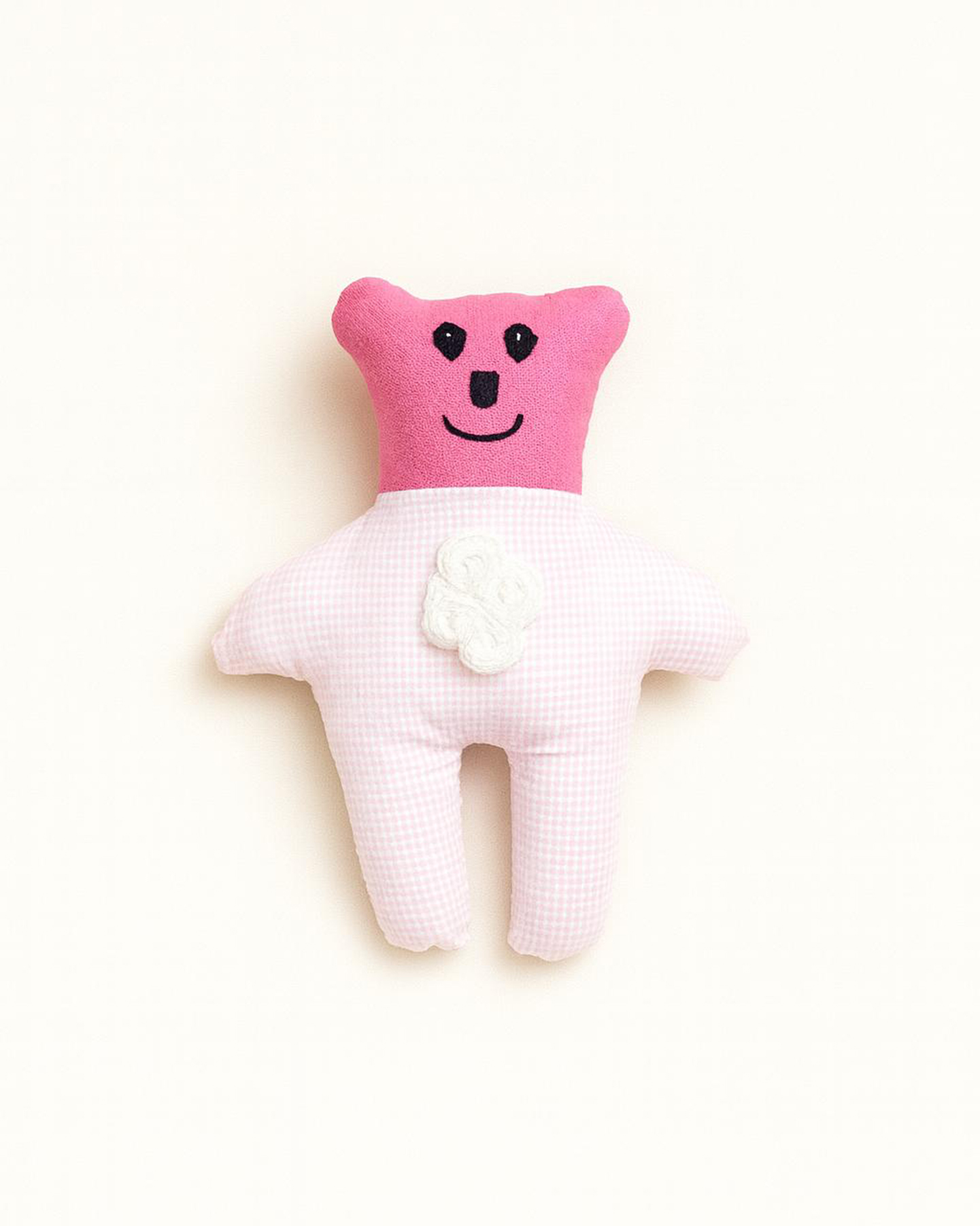 Sevimli tasarımıyla dikkat çeken pembe beyaz el yapımı kumaş ayıcık, çocukların en yakın arkadaşı olur.