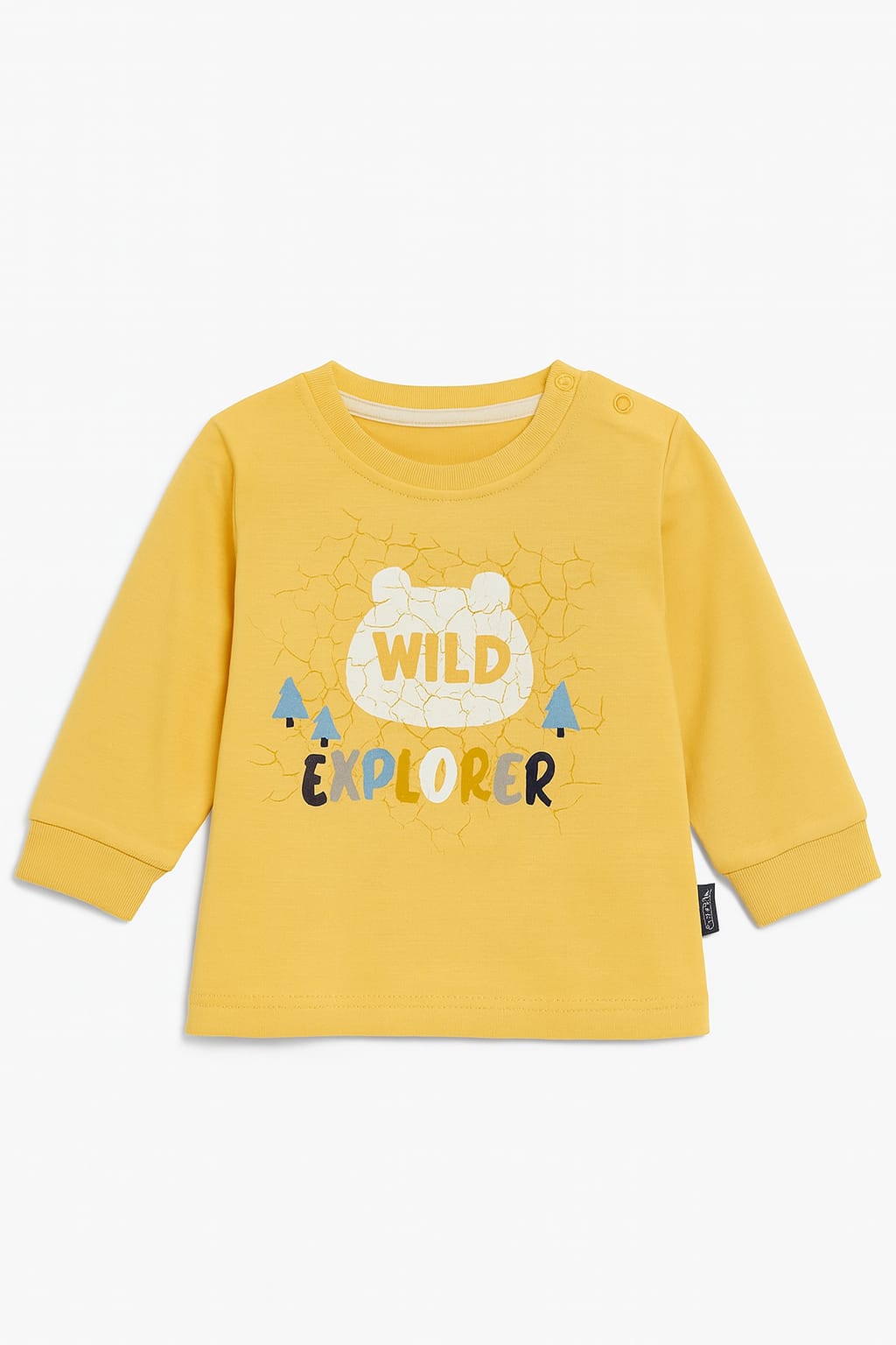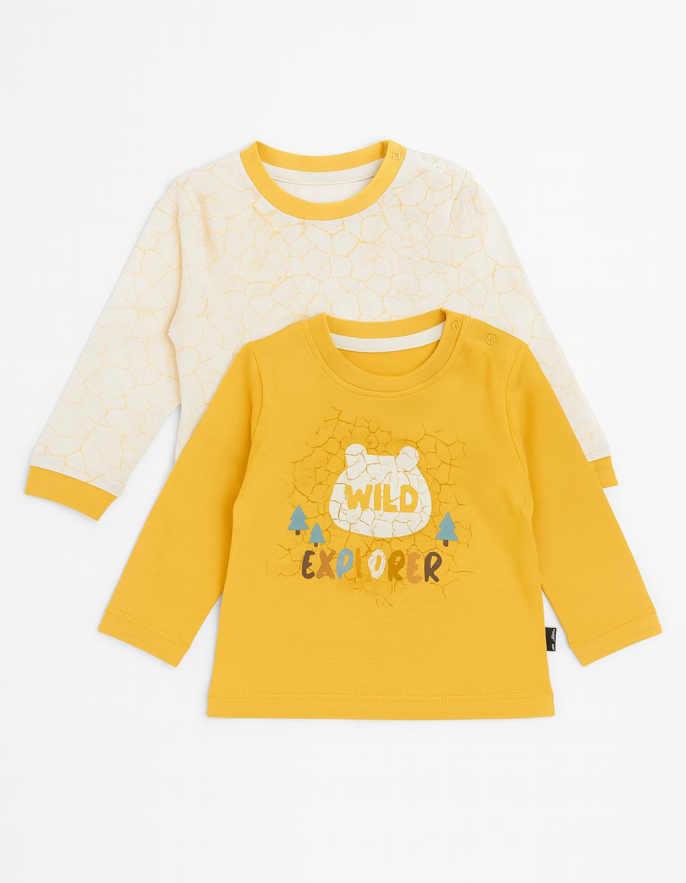 Erkek Bebek Yuvarlak Yaka Omuz Çıtçıtlı Uzun Kollu Sarı Desenli 2’li Sweat