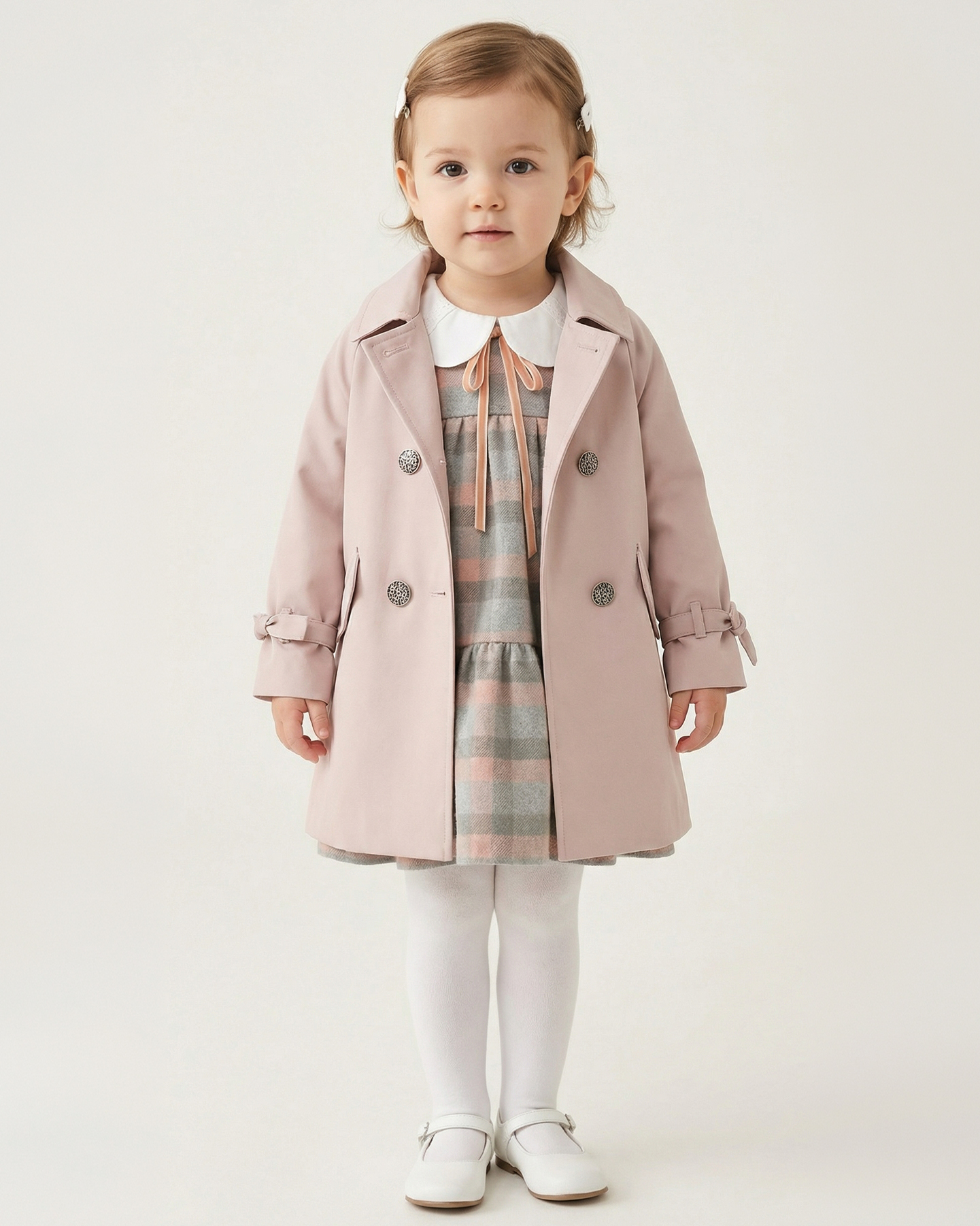 Kırmızı trençkot detaylı bu şık kız çocuk kombin, klasik ve modern tarzı bir araya getirir. Ekose elbise, beyaz çorap ve uyumlu kırmızı botlarla tamamlanan tasarım; hem günlük kullanım hem de özel günler için идеaldir. Yumuşak dokulu kumaşı ve rahat kalıbı sayesinde miniklere konforlu ve stil sahibi bir görünüm sunar.