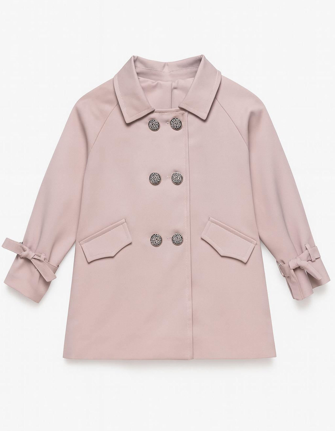 Zarif Düğme Detaylı Kız Çocuk Kaban & Elbise Kombini